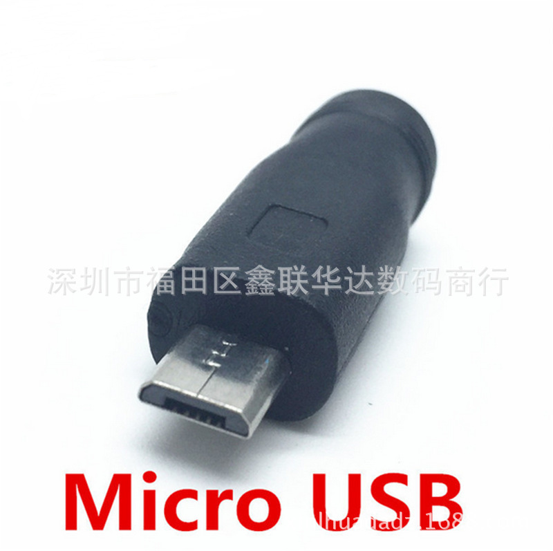 作用:将5.5*2.1(5.5*2.5)的DC接口,转换为micro usb接口 直接给手机或者平板等充电: