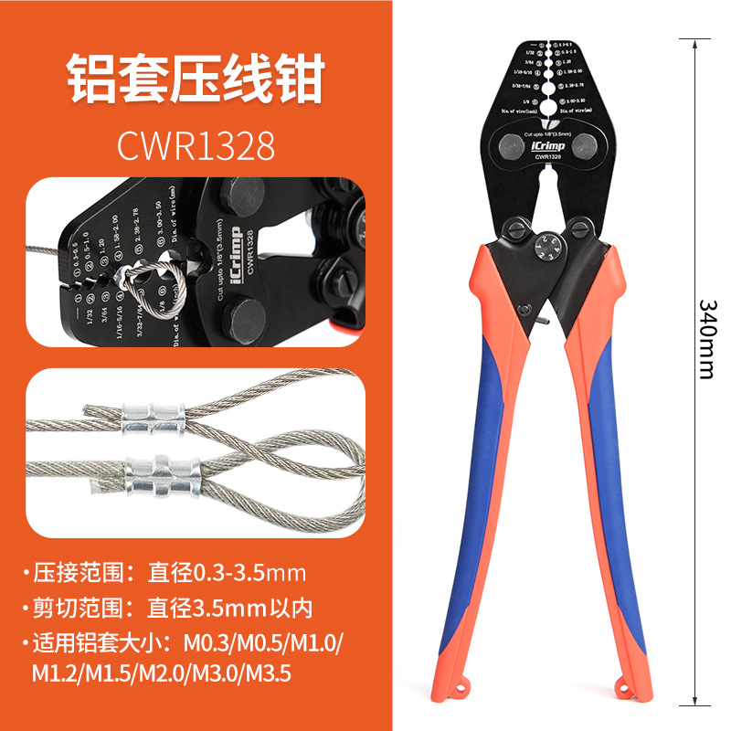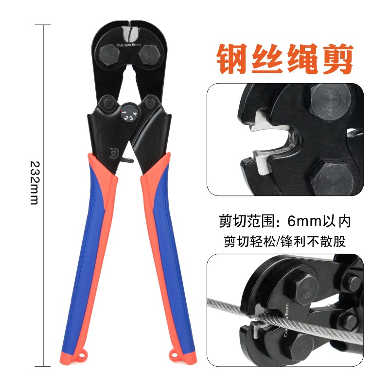 와이어 로프 가위 8 자형 알루미늄 압착 플라이어 304 스테인레스 스틸 1-6mm 멀티 스트랜드 와이어 로프 절단 압착 플라이어