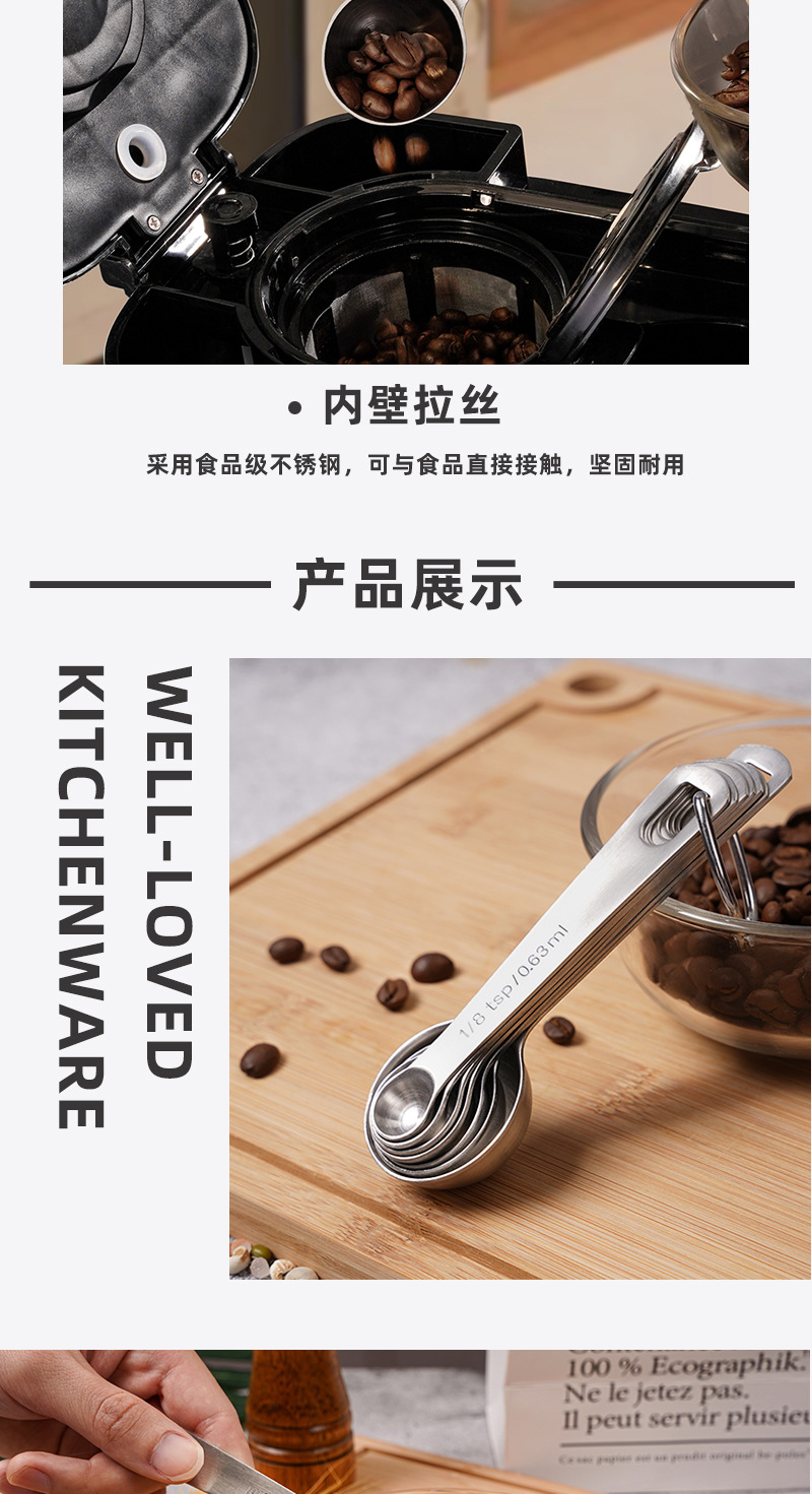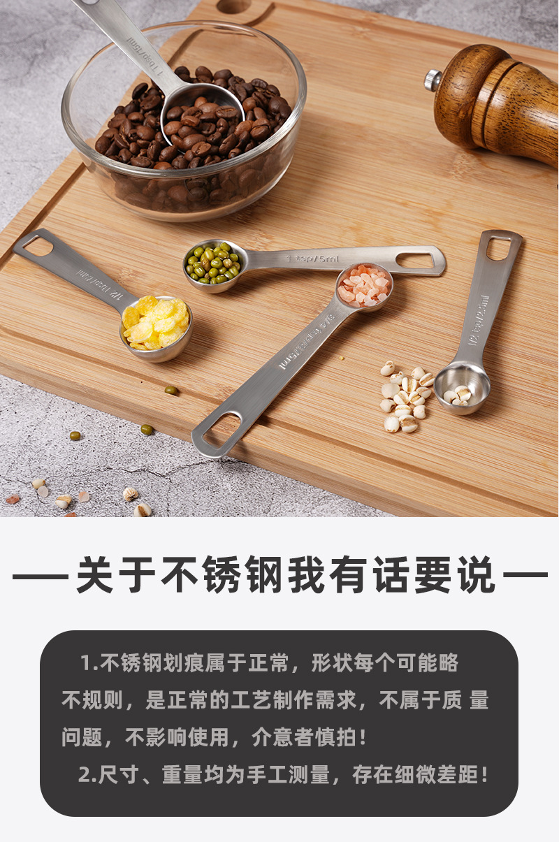 304 스테인레스 스틸 계량 스푼 세트, 베이킹용 원형 미니 계량 스푼, 손잡이와 후크가 있는 계량 스푼, 커피 계량 스푼스토어 가기