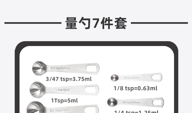 • F007P 스테인레스 스틸 측정 스푼 7 세트 (304)