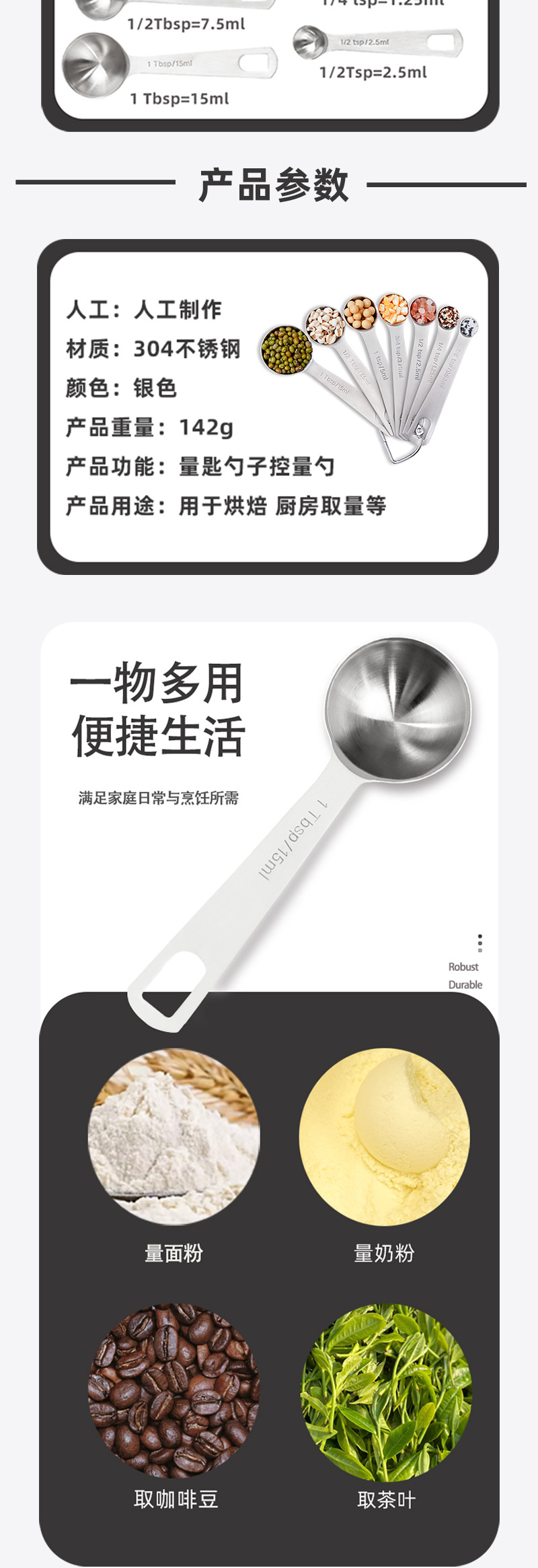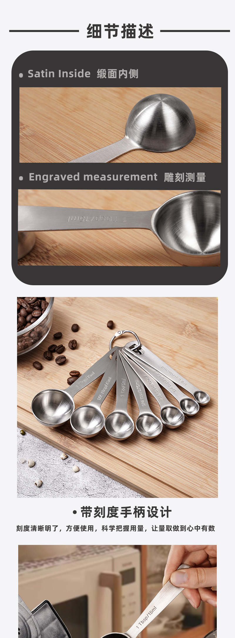 • F008P 스테인리스 계량 스푼 8 개 세트 (304)