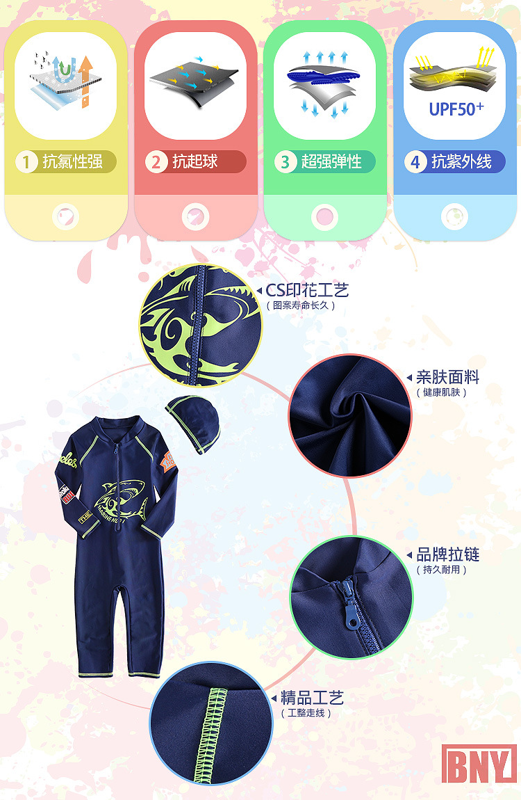 새로운 한국식 핫 스타일 어린이 수영복 긴팔 자외선 차단제 수영복 해파리 세트 소년 원피스 서핑 수상 스키 다이빙 세트