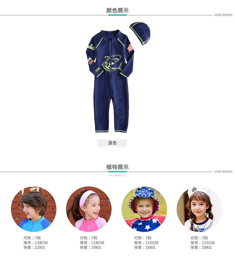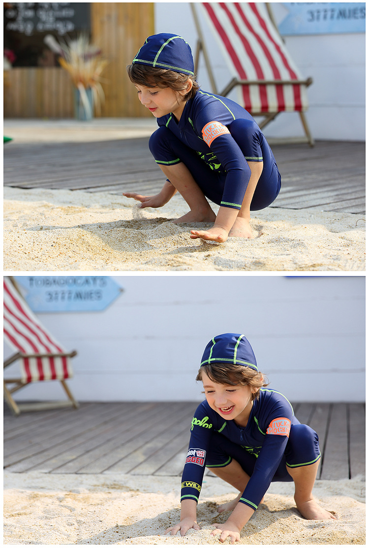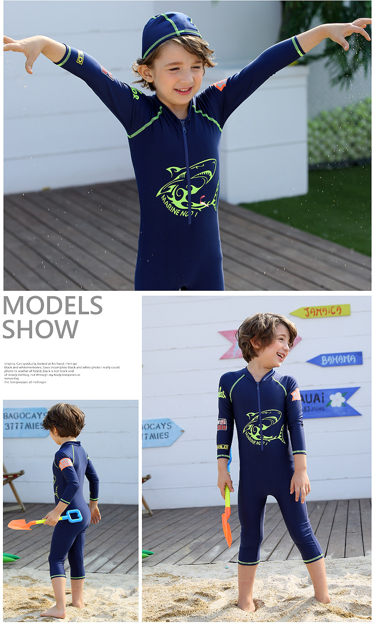 새로운 한국식 핫 스타일 어린이 수영복 긴팔 자외선 차단제 수영복 해파리 세트 소년 원피스 서핑 수상 스키 다이빙 세트스토어 가기