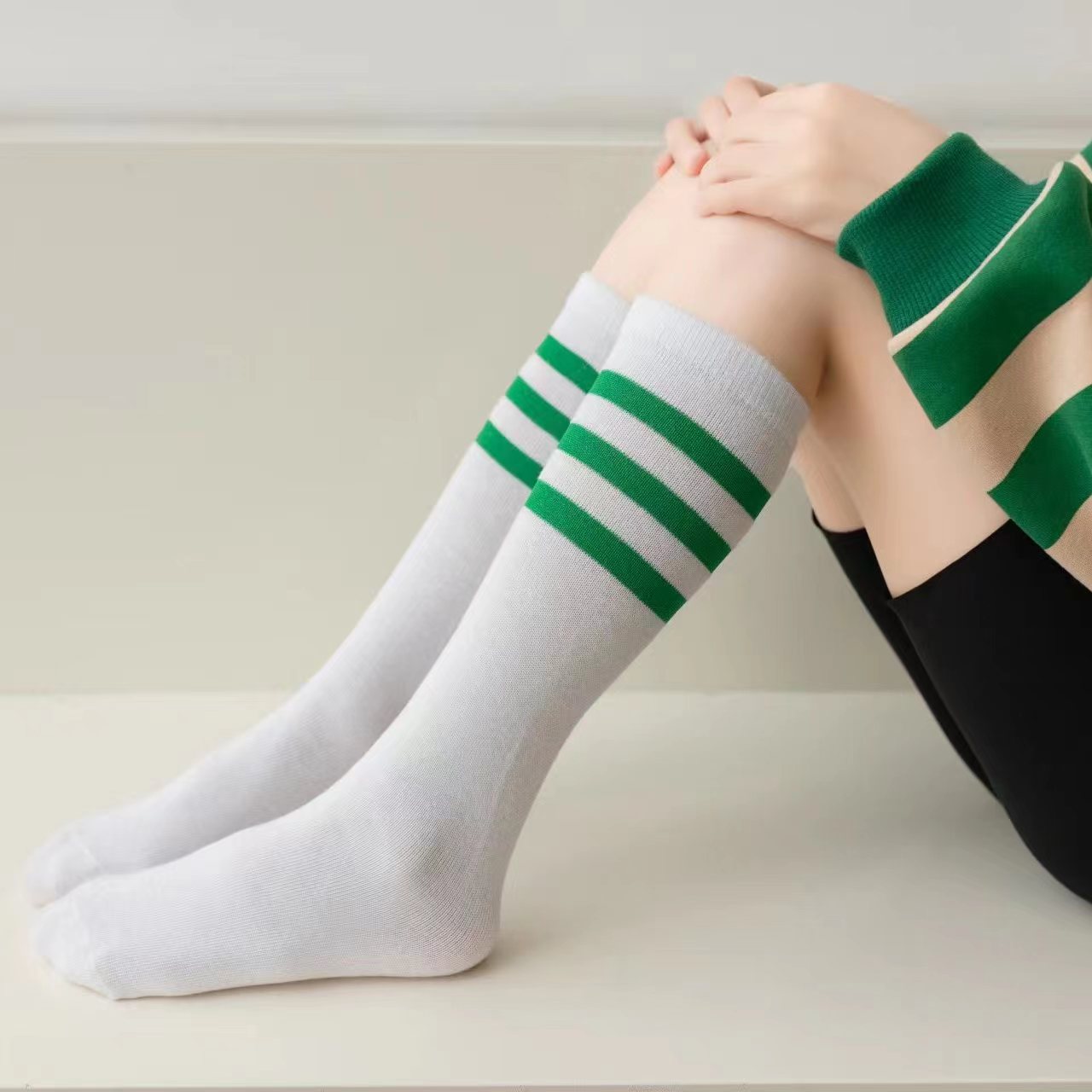 봄과 가을 어린이 무릎 양말 한국판 3 바 긴 튜브 학생 양말 일본면 어린이 양말 도매