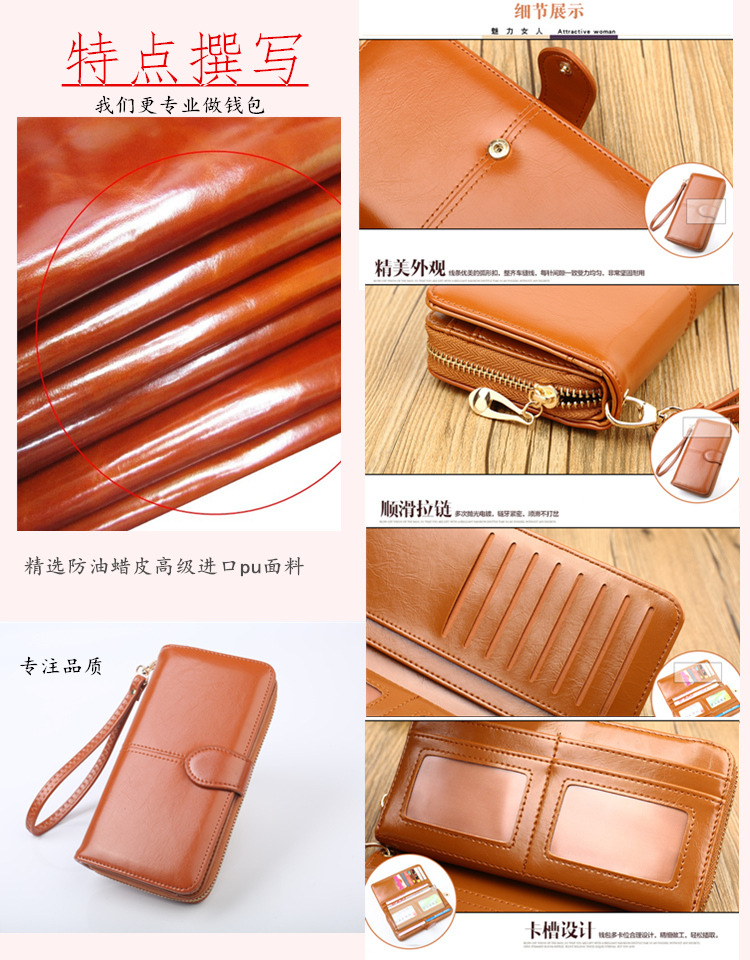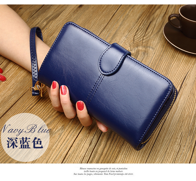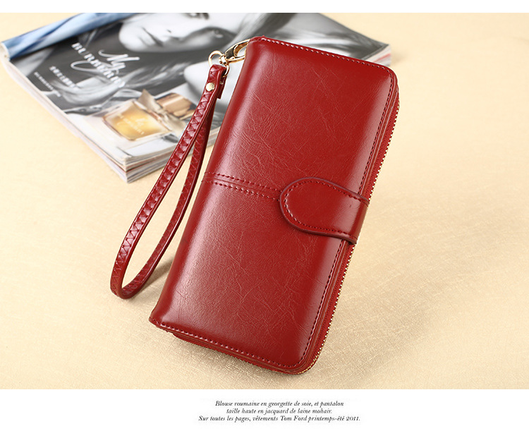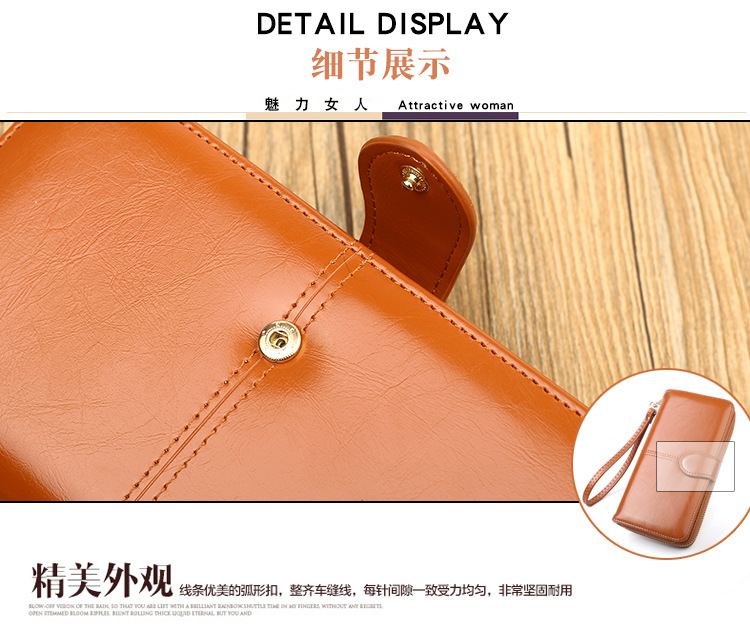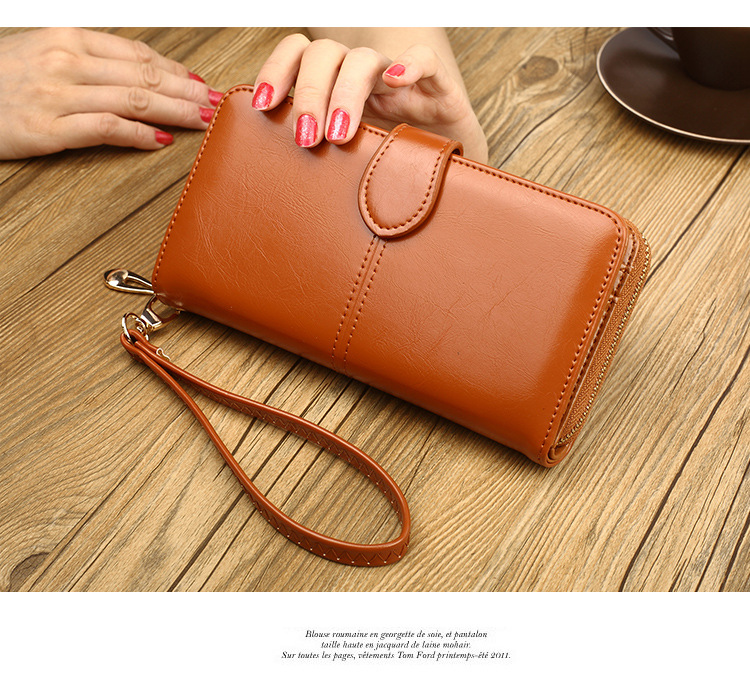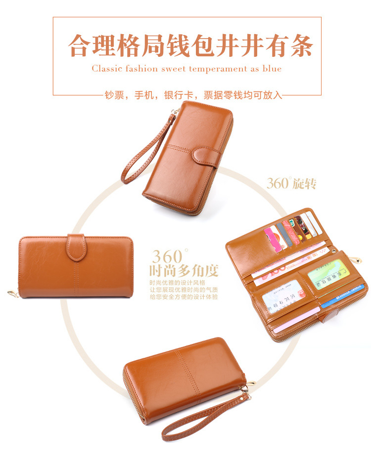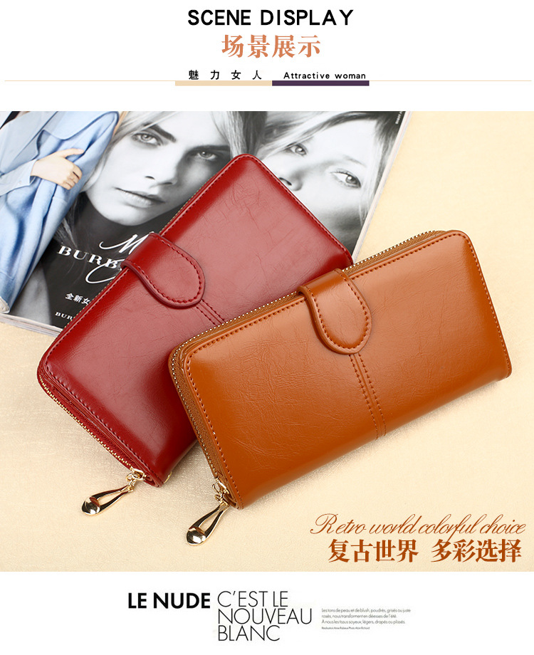뜨거운 판매 오일 왁스 가죽 지갑 빈티지 크로스 보더 휴대 전화 가방 긴 지퍼 동전 가방 여성용 카드 가방 대형 지폐 홀더 H680스토어 가기