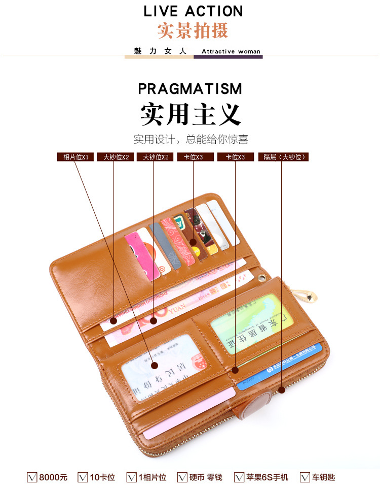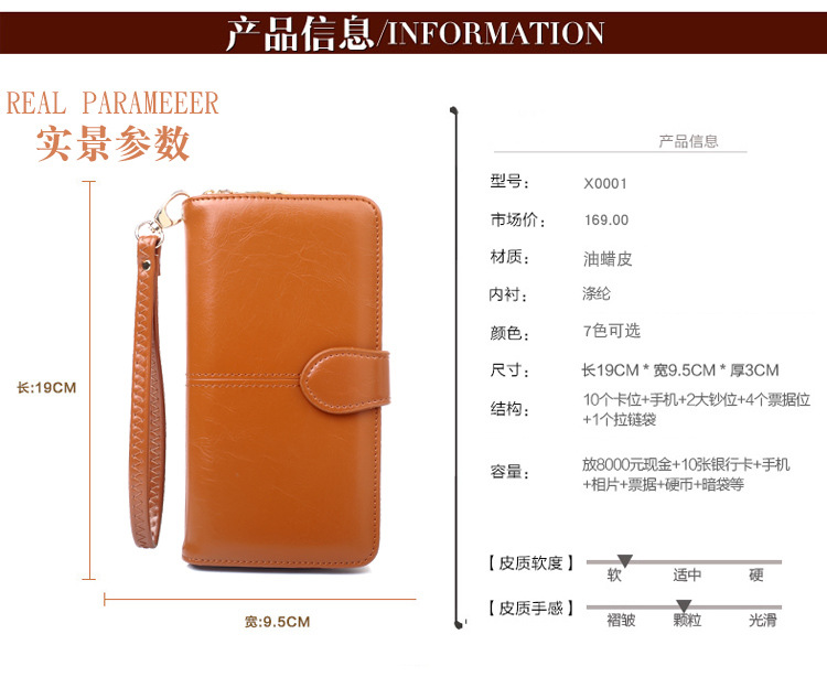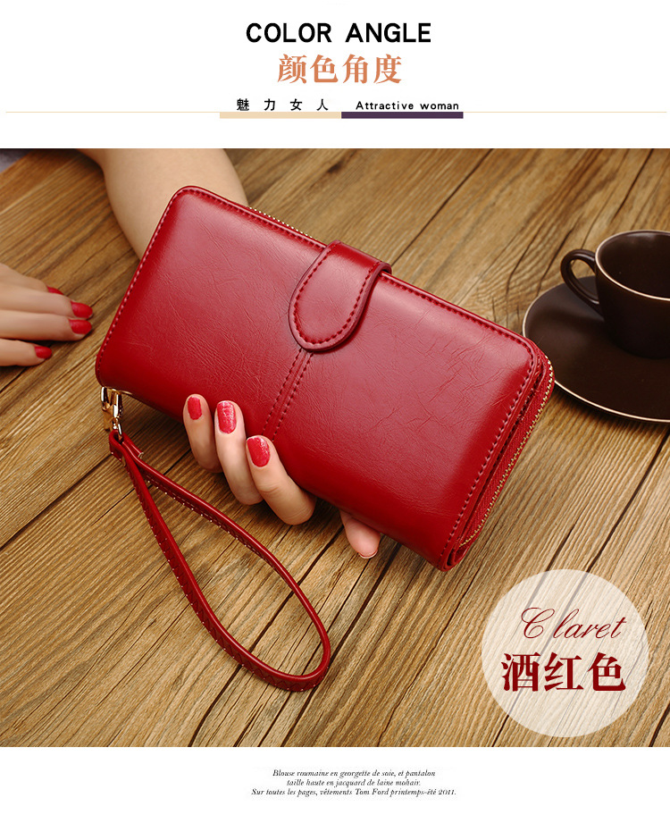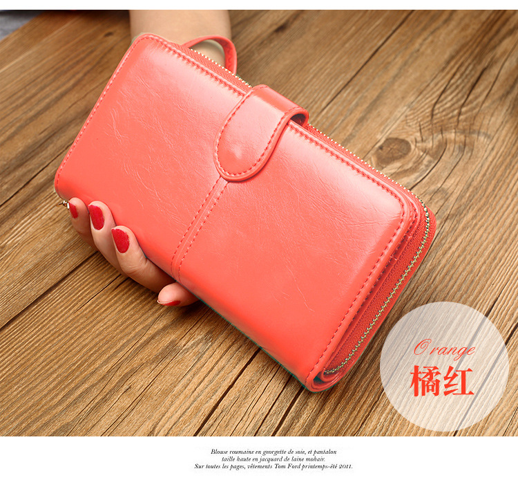 뜨거운 판매 오일 왁스 가죽 지갑 빈티지 크로스 보더 휴대 전화 가방 긴 지퍼 동전 가방 여성용 카드 가방 대형 지폐 홀더 H680