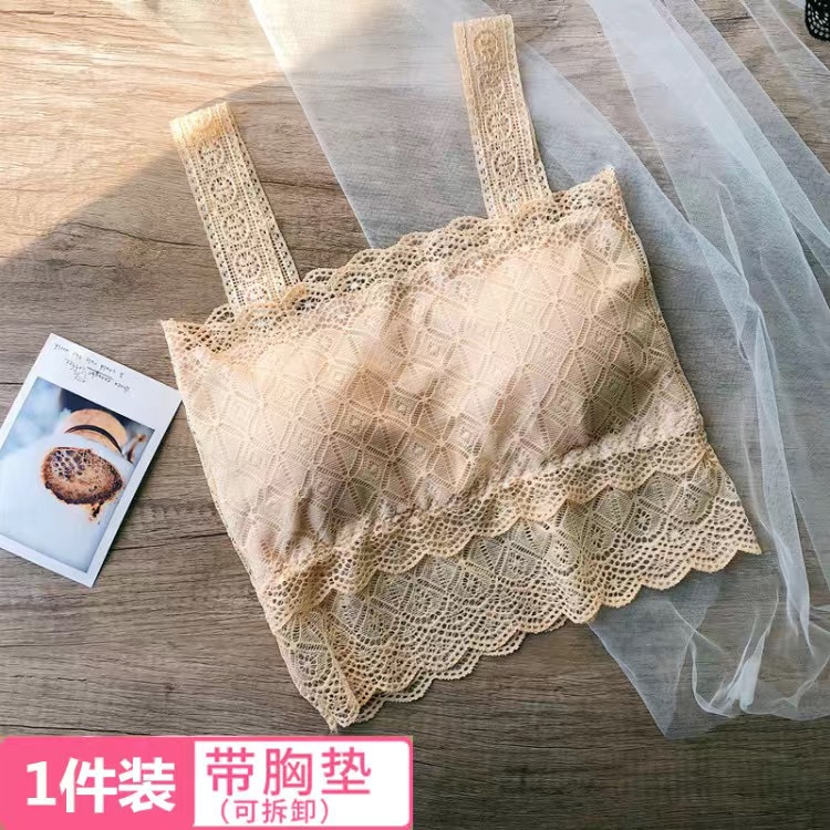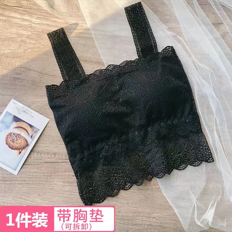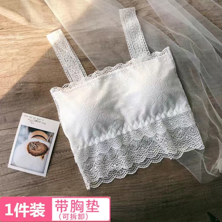 여름 한국 스타일 여성의 트렌디한베이스 슬링 셔츠 다이아몬드 레이스 중공 랩 가슴 짧은 조끼 안티 러닝 라이트 튜브 탑