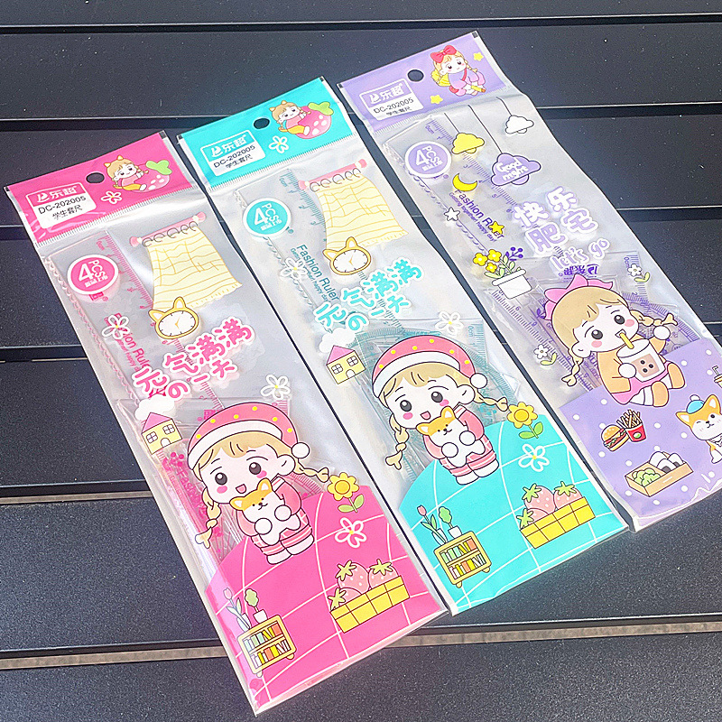 창조적 인 학생 공룡 통치자 세트 20cm 직접 + 2 삼각형 + 반원형 학생 용품 상품 도매스토어 가기