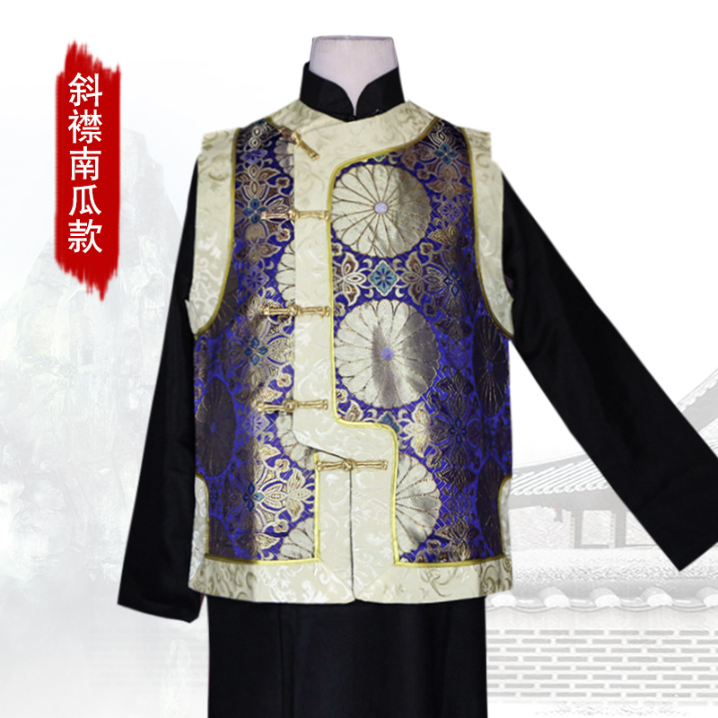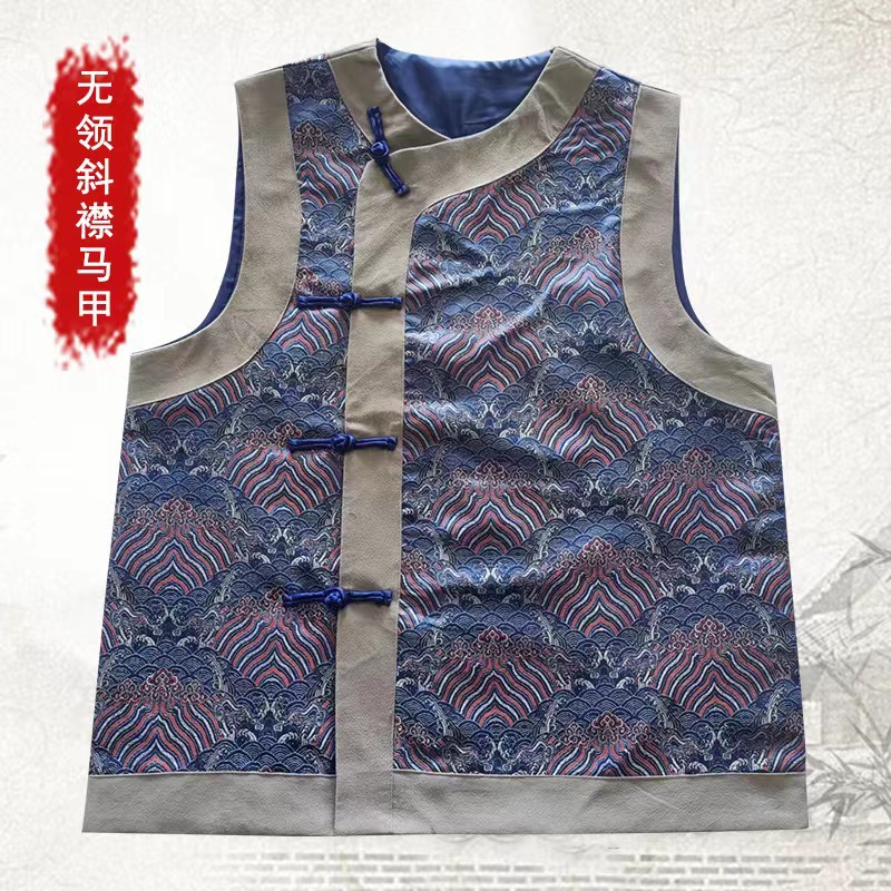 고대 남자 복고풍 중국 스타일 버클 봄과 가을 새로운 민소매 학생 성인 마스터 스트레이트 옷깃 조끼 도매스토어 가기