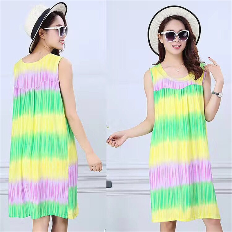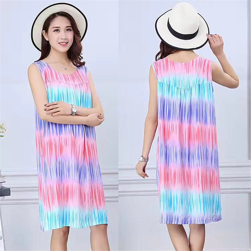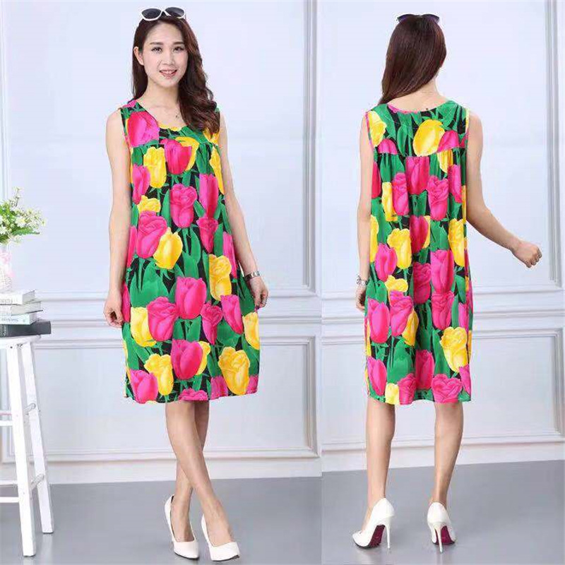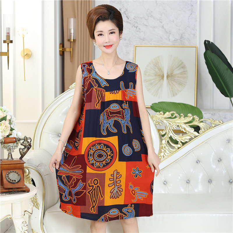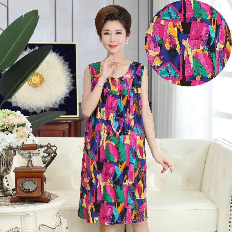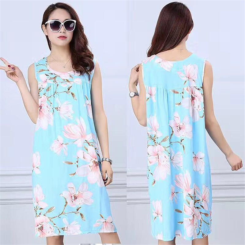 중년 및 노인 여성을위한 여름 잠옷 순수 코튼 실크 어머니의 잠옷 여름 성인 대형 코튼 실크 드레스