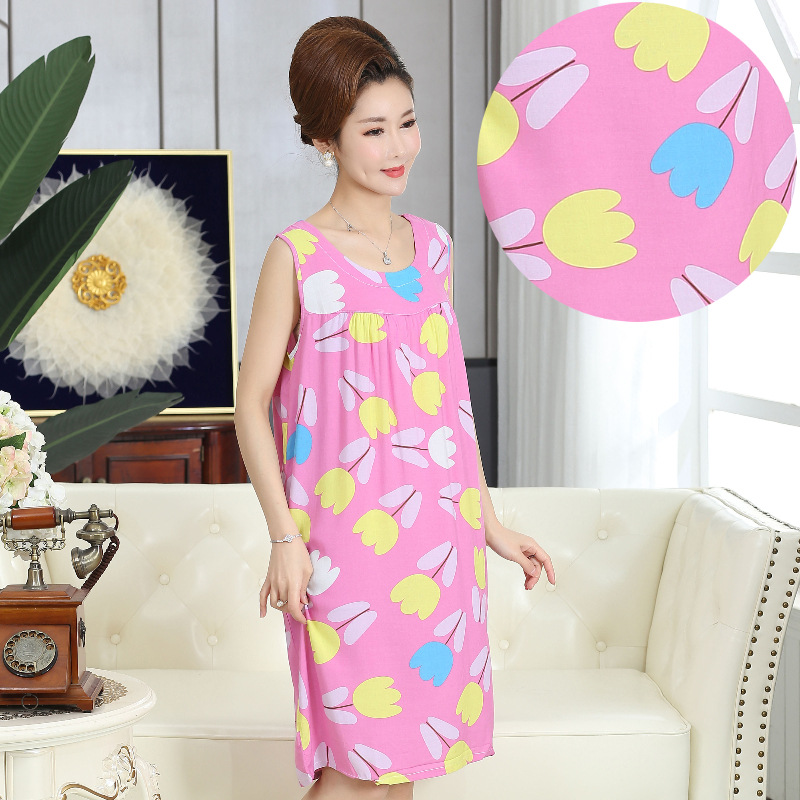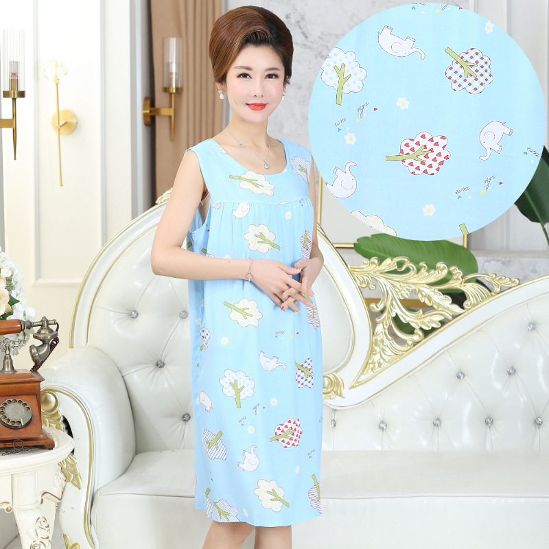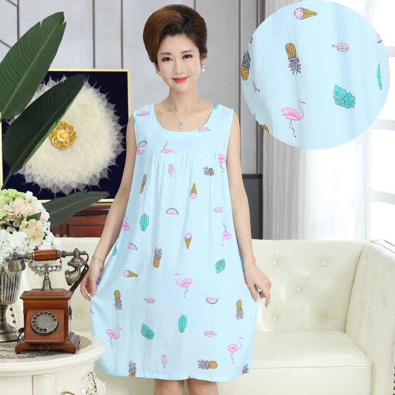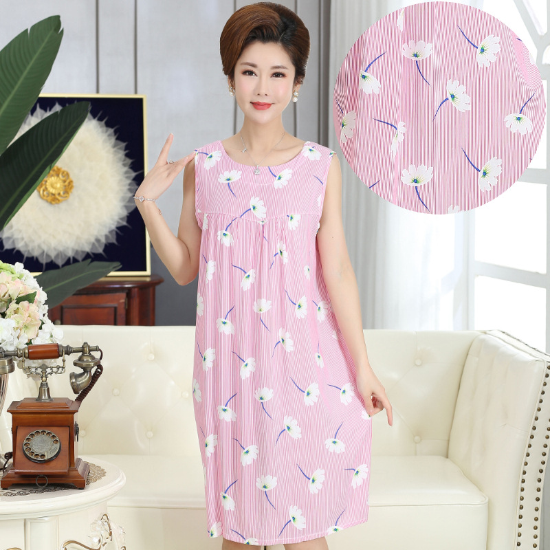 중년 및 노인 여성을위한 여름 잠옷 순수 코튼 실크 어머니의 잠옷 여름 성인 대형 코튼 실크 드레스스토어 가기