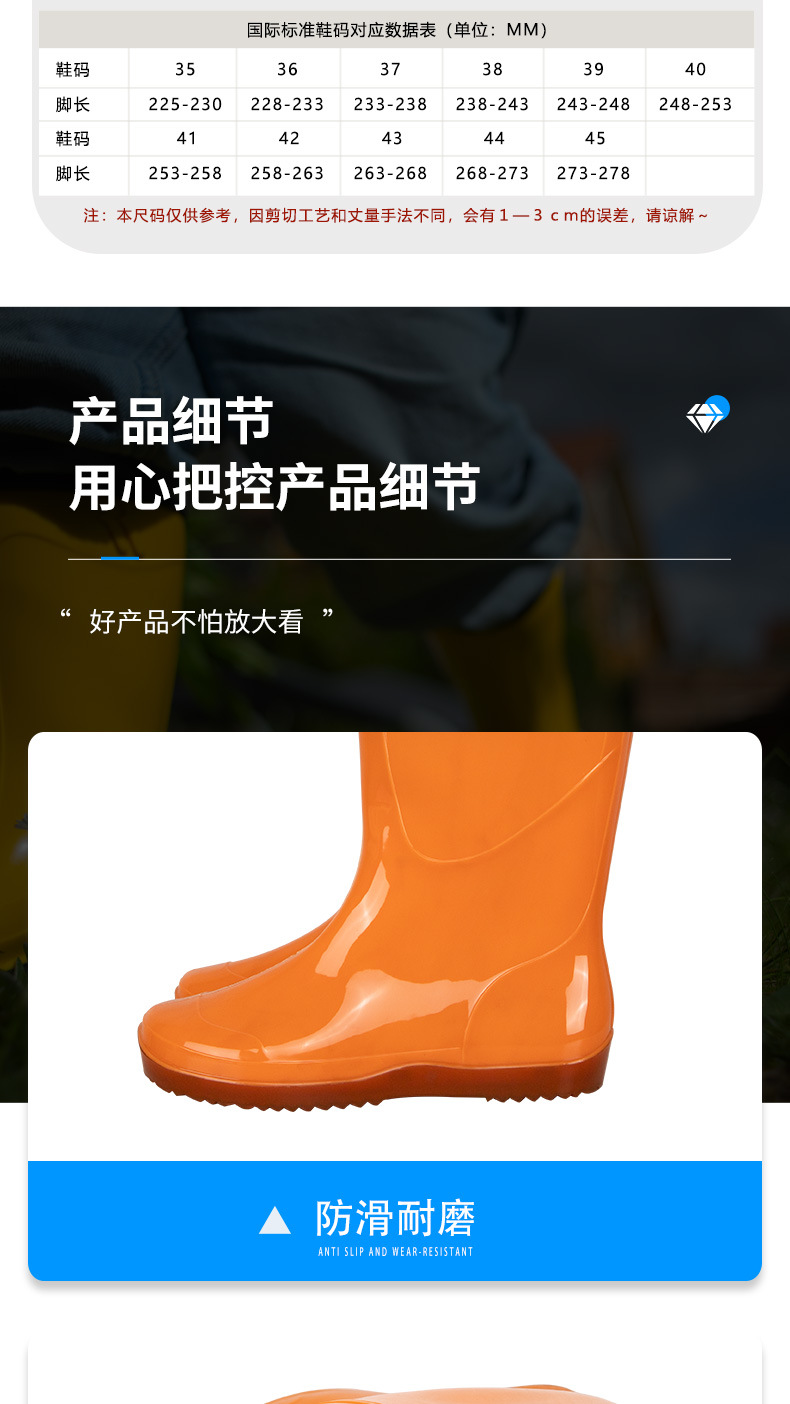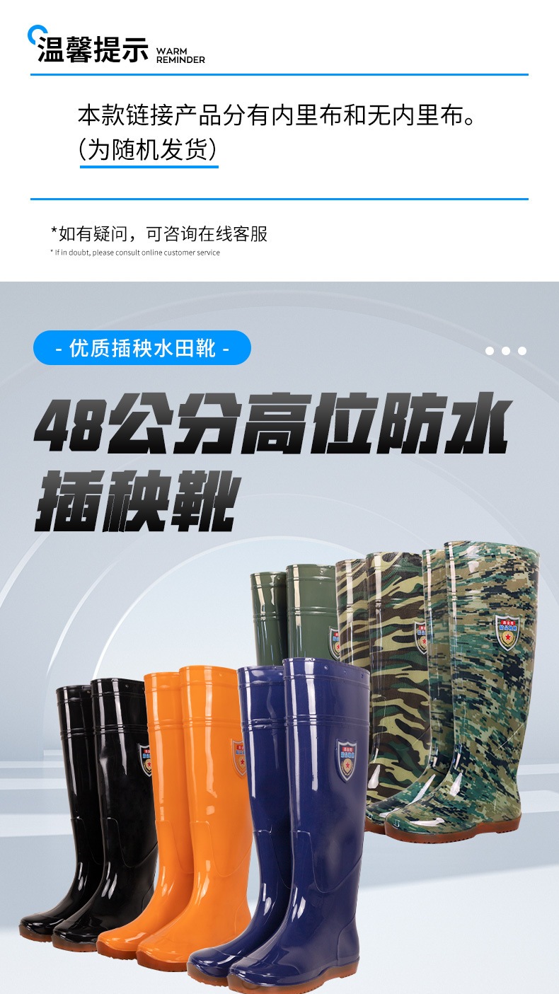 하이부츠는 안감이 없는 PVC 이앙신, 장화, 논농사용 워터슈즈로 사용할 수 있으며 미끄럼 방지, 방수, 내마모성, 내마모성이 뛰어납니다.