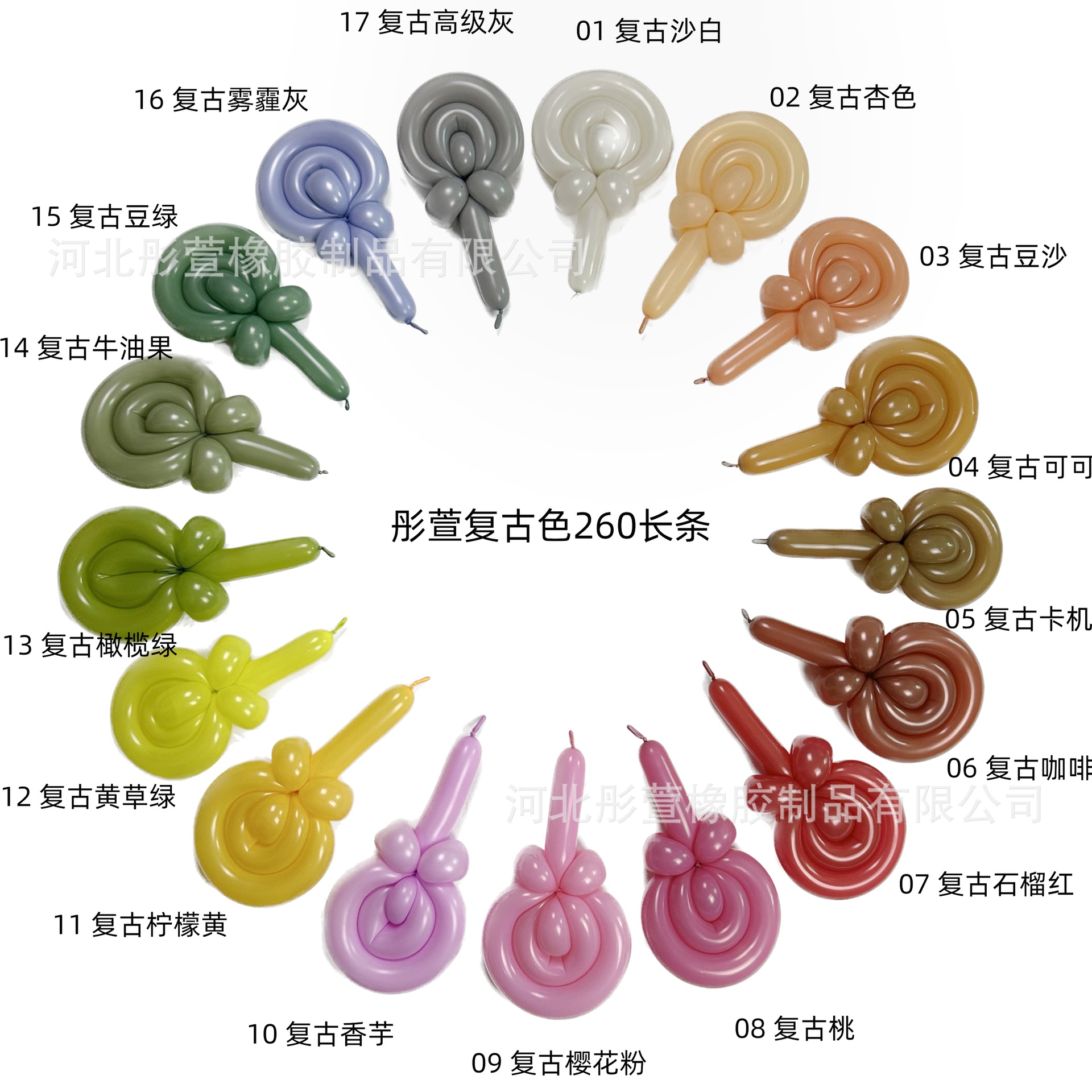 통 쑤언 제조 업체 공급 마법의 어린이 장난감 복고풍 색상 260 긴 풍선 결혼식 장식 큰 상담
