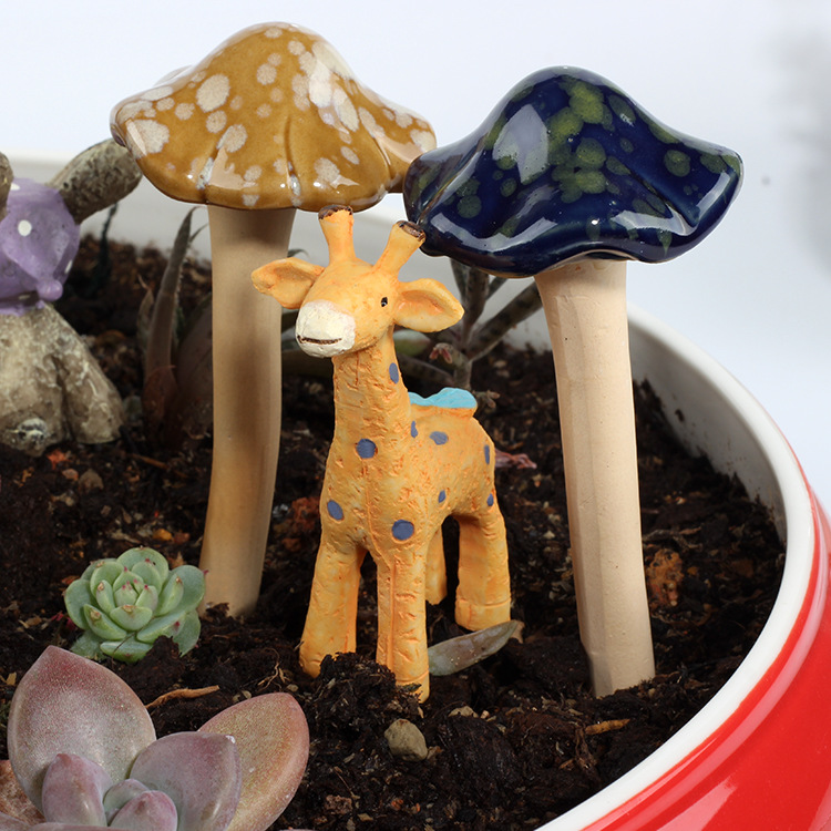 도자기 공예품 청화백자 가마에서 변형된 작은 버섯 모양 화분 장식품 정원용 유약 꽂이