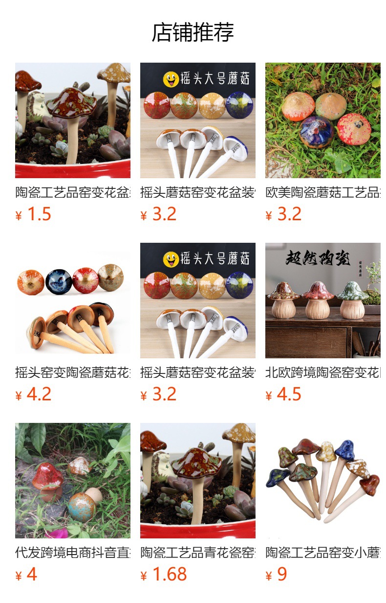도자기 공예품 청화백자 가마에서 변형된 작은 버섯 모양 화분 장식품 정원용 유약 꽂이스토어 가기