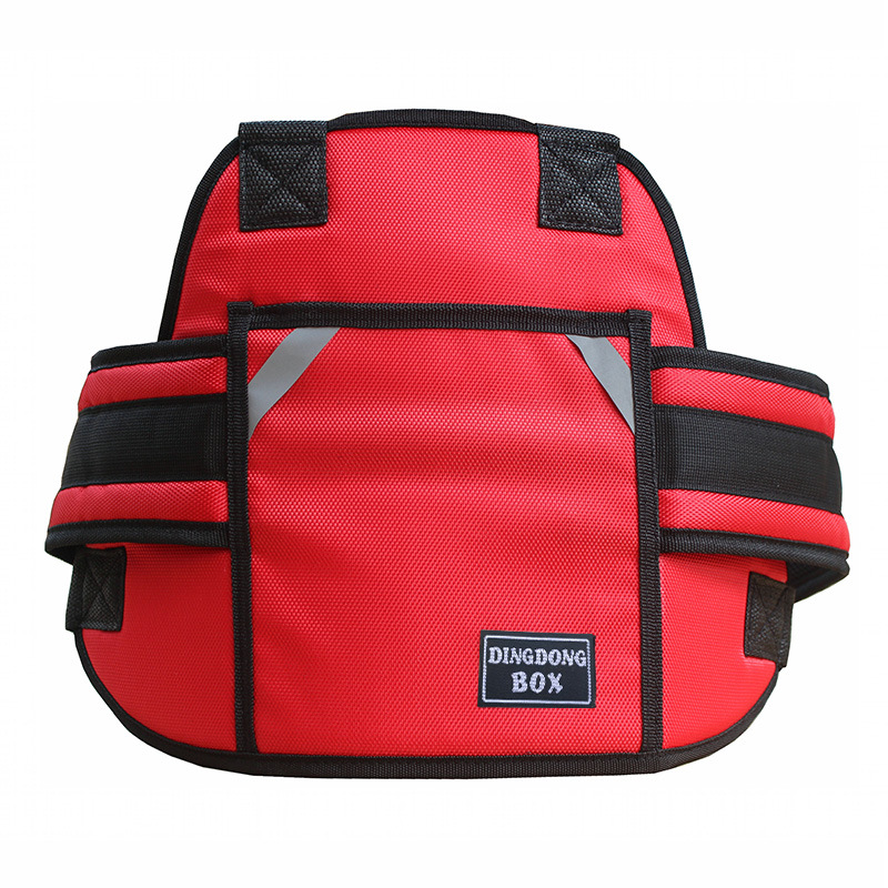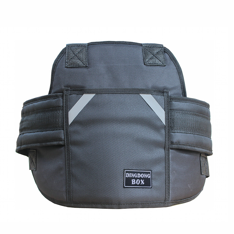 安全带全部使用3.8cm加宽安全带,捆绑在大人身上的腰带是用一条带子固定的,更安全,称重200斤也是没有问题的,连着的带子固定在口袋里面,更美观,口袋上有反光贴,夜行很安全