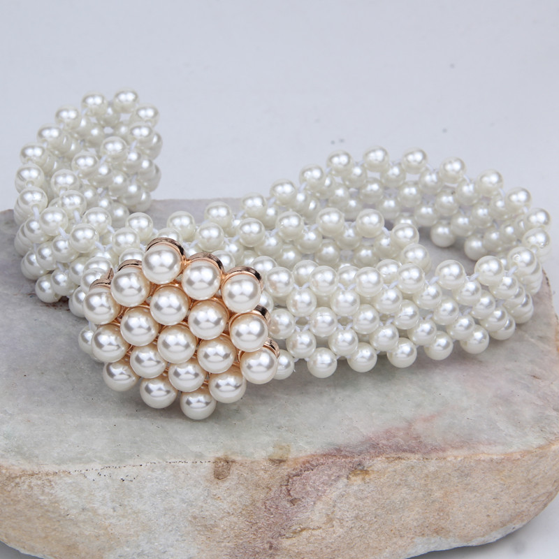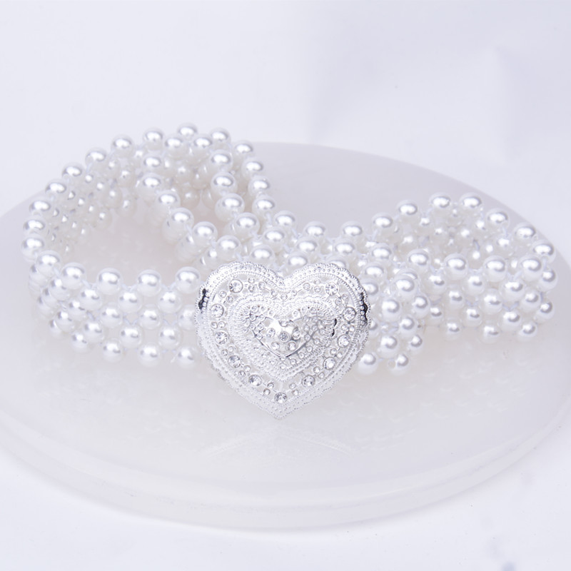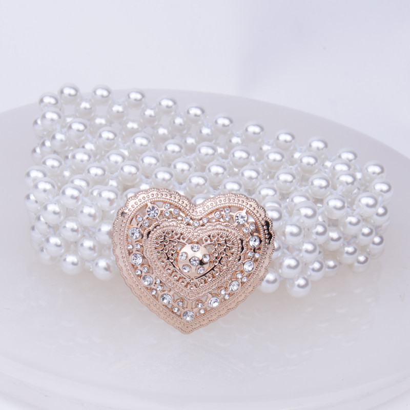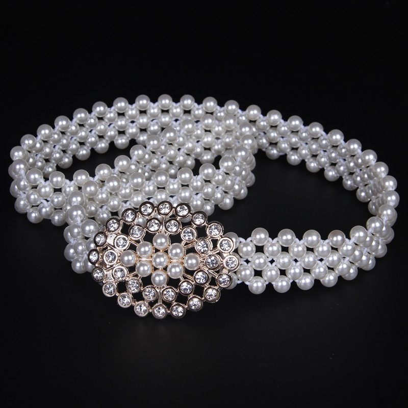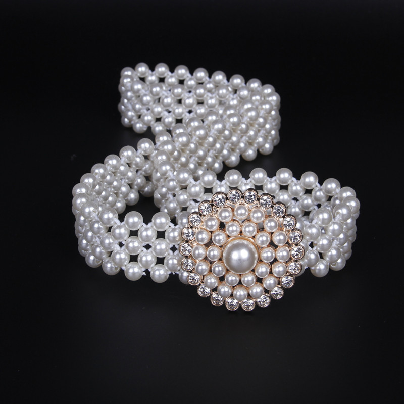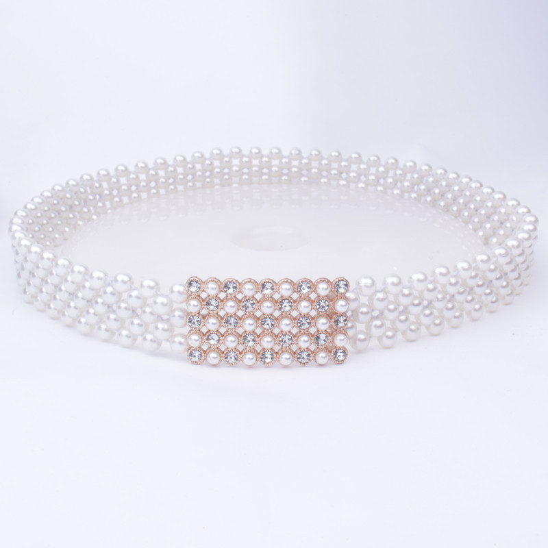 모조 다이아몬드 얇은 진주 허리 체인 여성의 달콤한 장식 와이드 원피스 허리 커버와 여자의 탄성 벨트 여름 한국 스타일