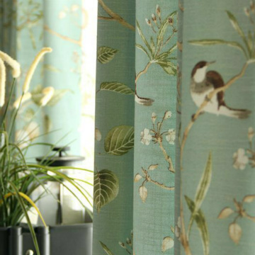 미국 복고풍 목가적 인 코튼 린넨 꽃과 새 프린트 완성 된 반 음영 침실 거실 커튼 창 스크린