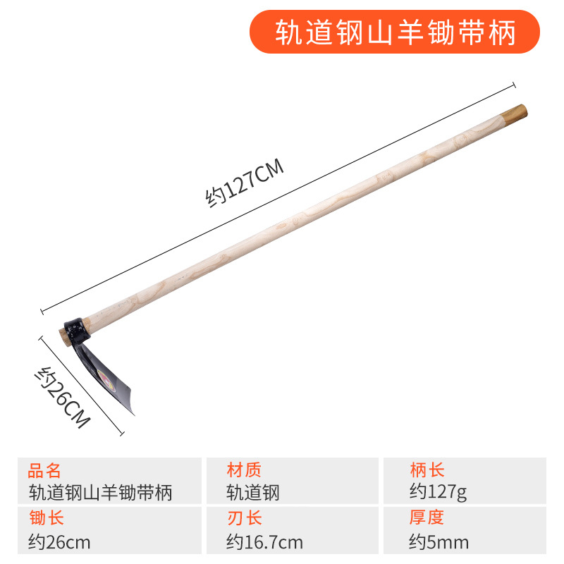 염소 브랜드 라운드 홀 괭이 야채 성장 강철 괭이 산 괭이 터닝 괭이 농장 도구 야채 성장 큰 괭이 긴 손잡이스토어 가기