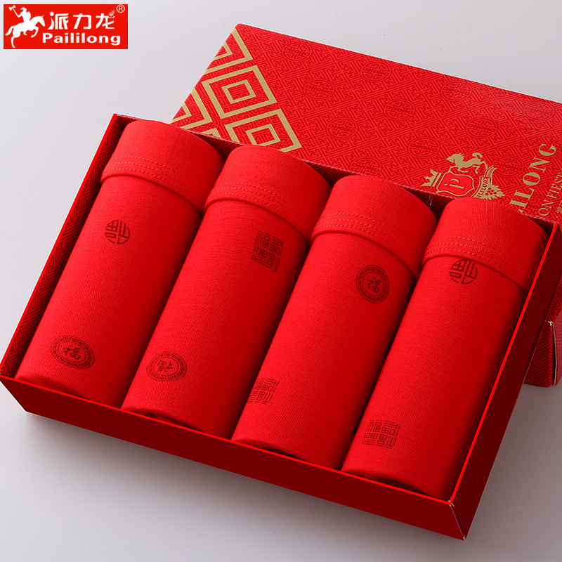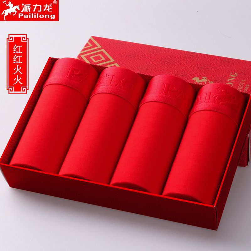 새로운 남자 속옷 사각 팬티 빨간 반바지 남자의 용의 해 새로운 결혼식 축제 빨간 복서