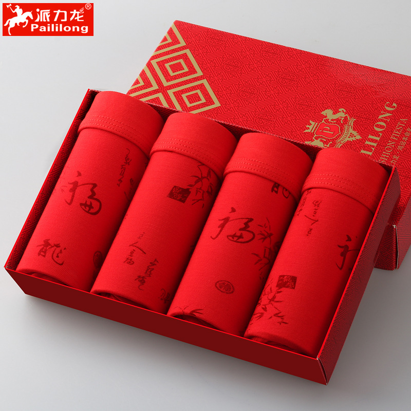 새로운 남자 속옷 사각 팬티 빨간 반바지 남자의 용의 해 새로운 결혼식 축제 빨간 복서스토어 가기