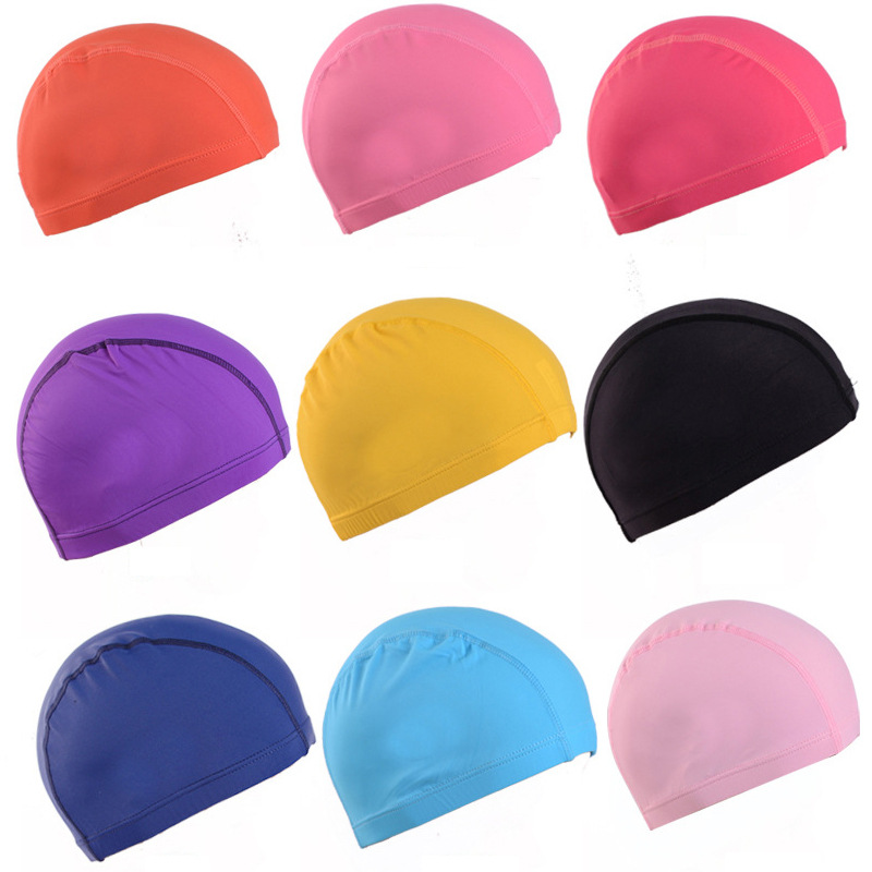 성인 수영 모자 수영 수영장 천 모자 단색 폴리에스터 탄성 좋은 남자 풀오버 모자 여자의 긴 머리 큰 수영 모자 여름