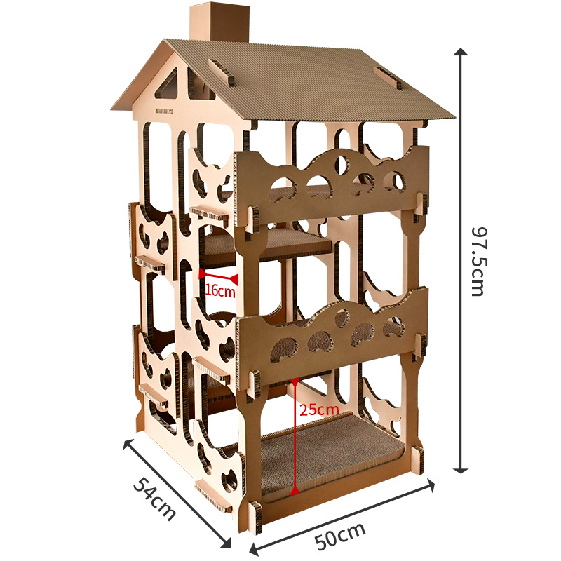 데쿠 골판지 고양이 집 4 층 고양이 빌라 DIY 고양이 등산 랙 고양이 긁는 판 고양이 둥지 애완 동물 고양이 장난감 배달 고양이 잔디스토어 가기