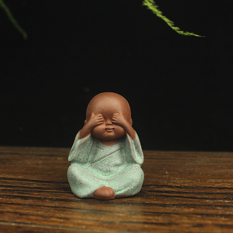 국경 간 보라색 모래 차 애완동물 장식 4 작은 스님 도자기 다도 다육 화분 장식 창조적 인 작은 가운 도매스토어 가기