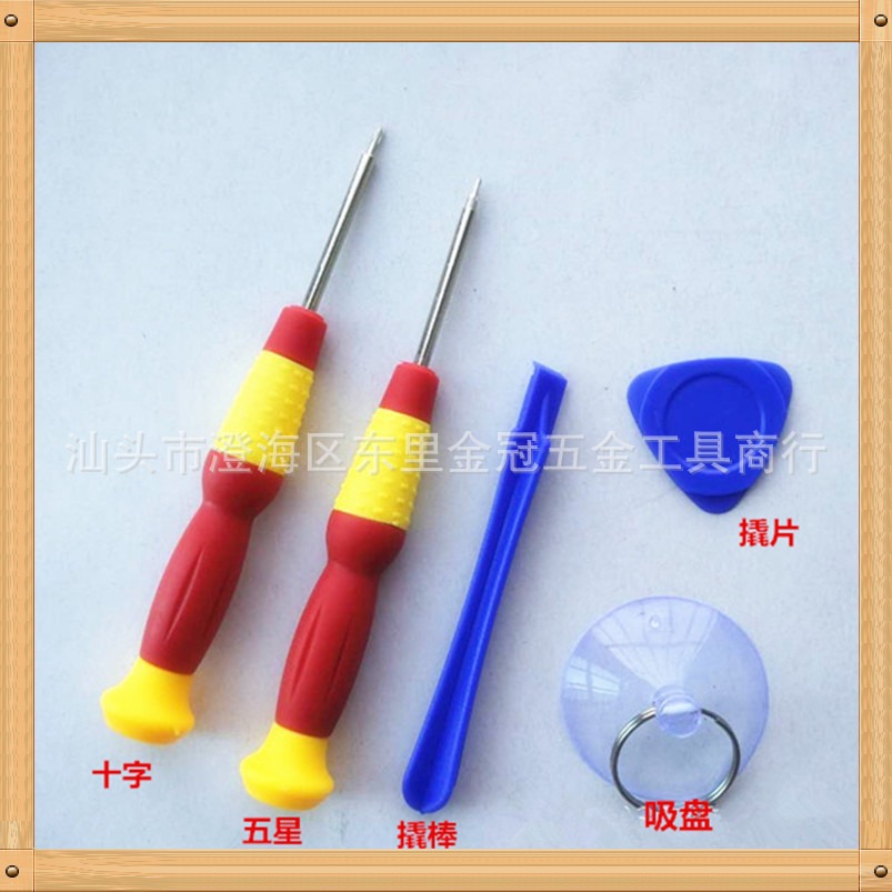 商品包含:十字螺丝刀1支+五角螺丝刀1支+拆机棒1根+拆机片1块+吸盘1个,带封口袋包装,拆机齐全的一套工具3387987797_992766833_副本