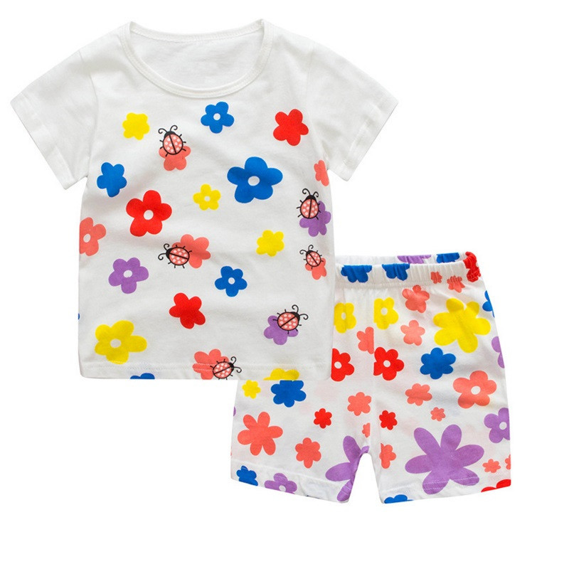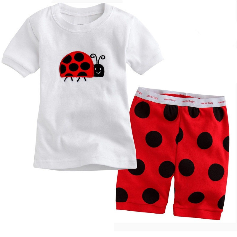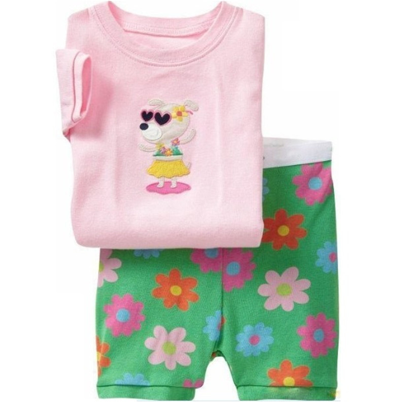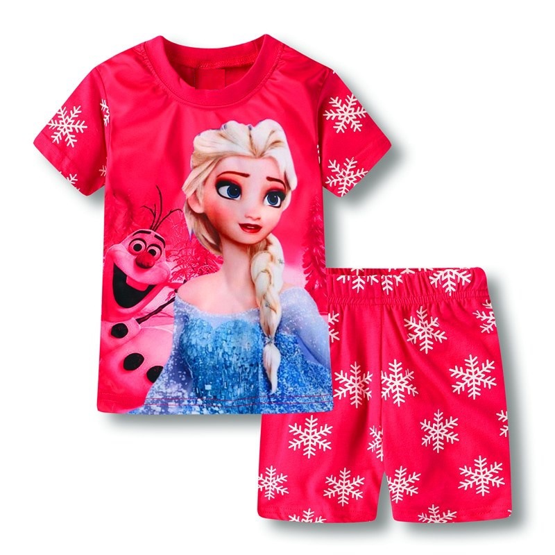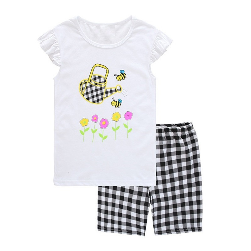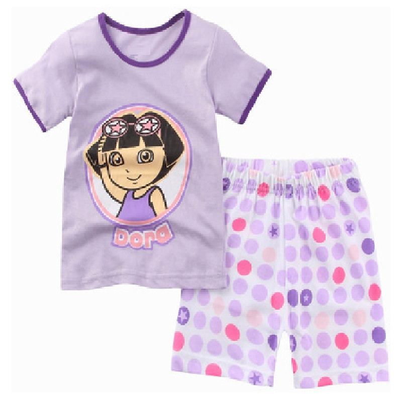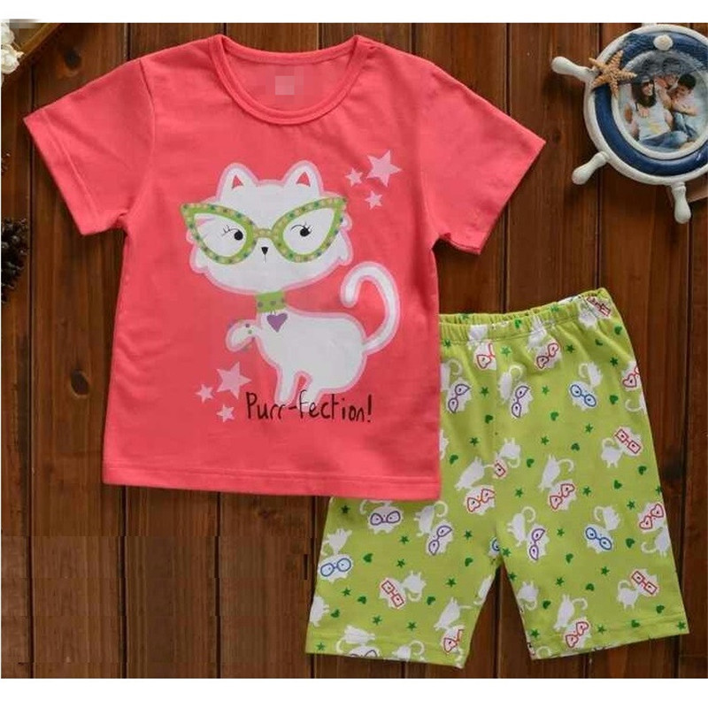 새로운 여자 반팔 여자 스타일 가정 옷 어린이 의류 여름 세트 에어컨 옷 만화 잠옷 K090스토어 가기