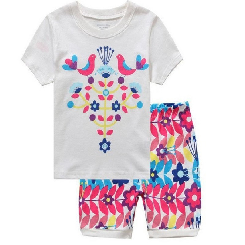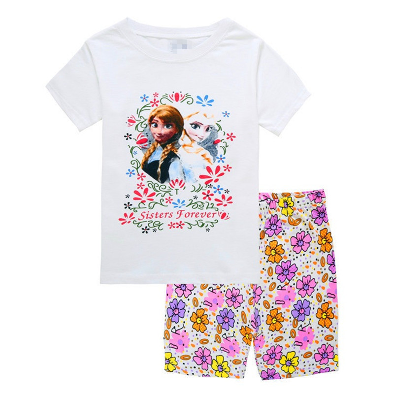 새로운 여자 반팔 여자 스타일 가정 옷 어린이 의류 여름 세트 에어컨 옷 만화 잠옷 K090