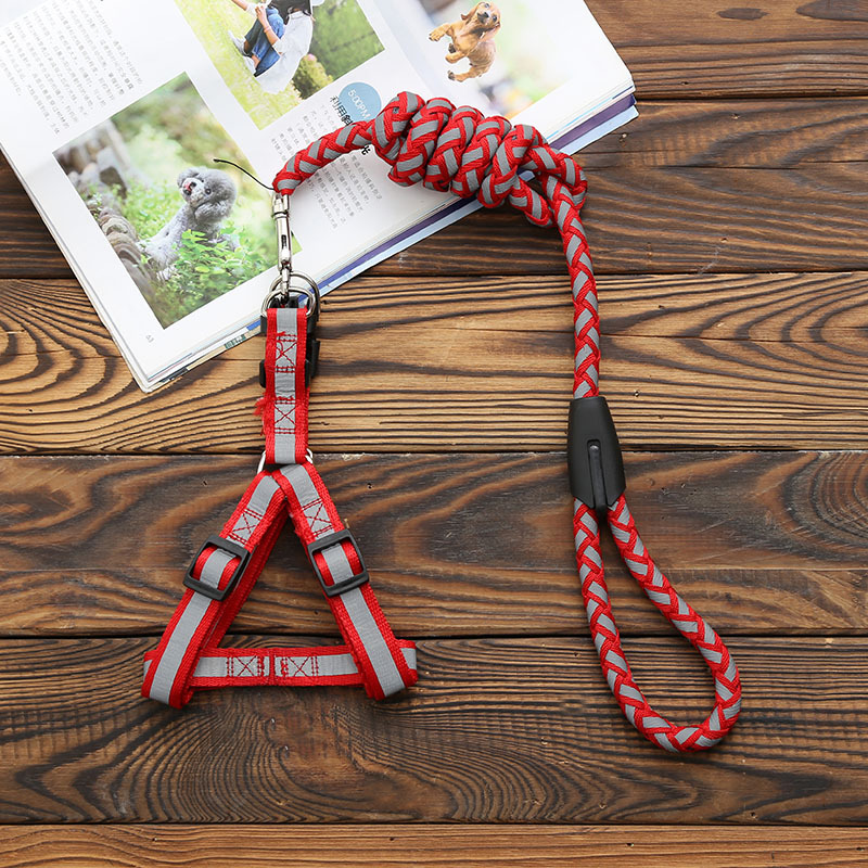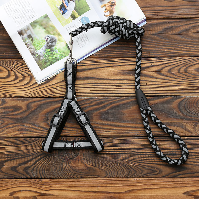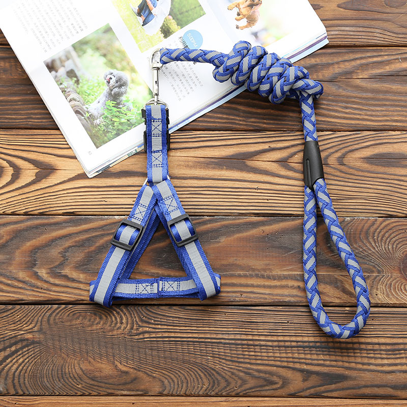 새로운 반사 꼰 애완 동물 가죽 끈 가슴 스트랩 대형, 중형 및 소형 개 가죽 끈 개 가죽 끈 Shuangyu 애완 동물 용품스토어 가기