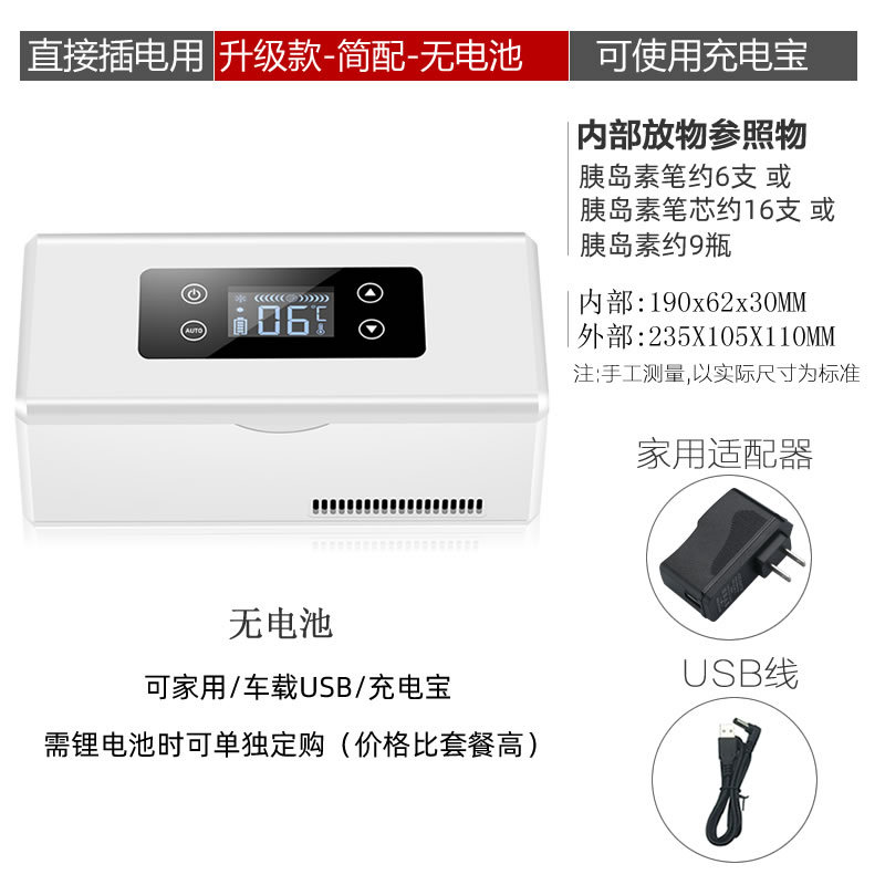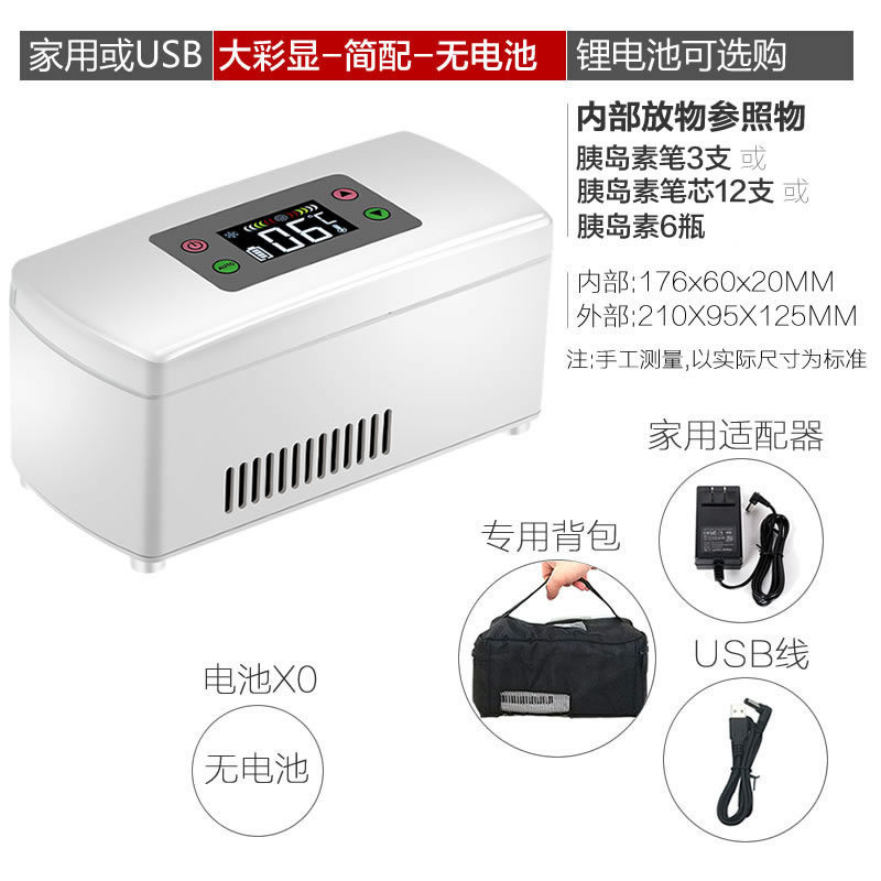 标配 包含:冷藏盒、家用线充电器、车载线、小背包、1组电池、说明书保修卡、合格证,彩盒内包装,黄皮纸外包装。简配无电池