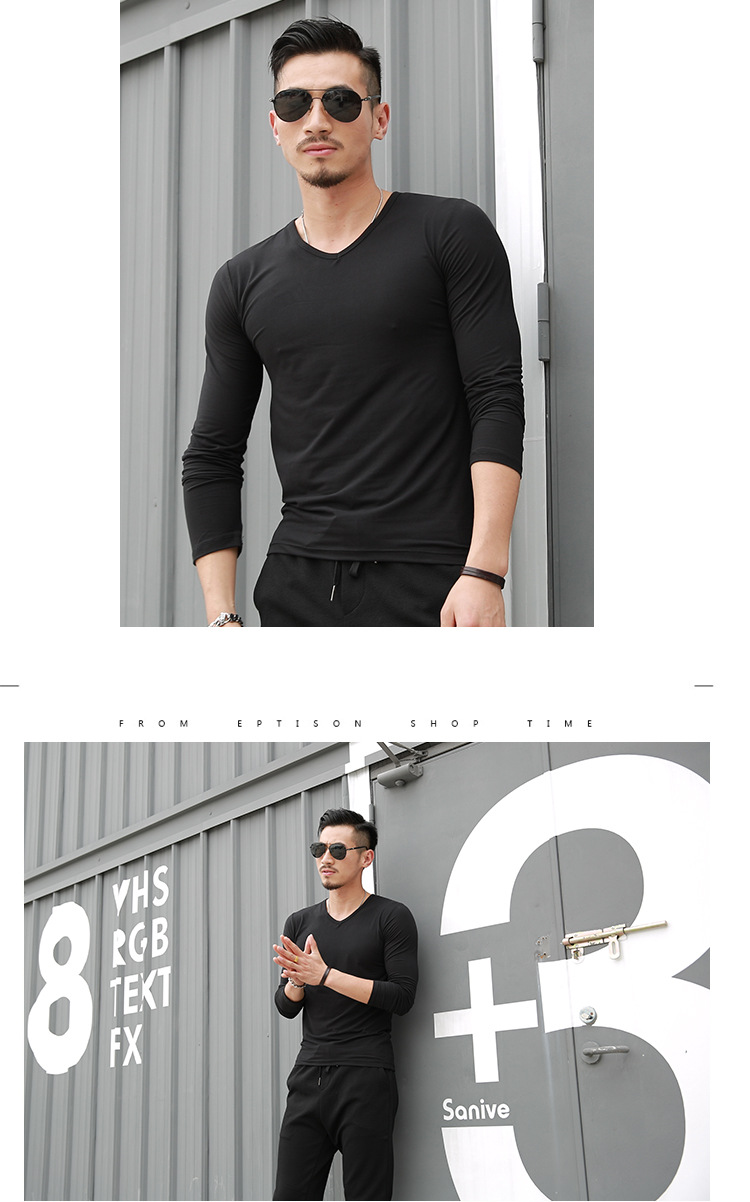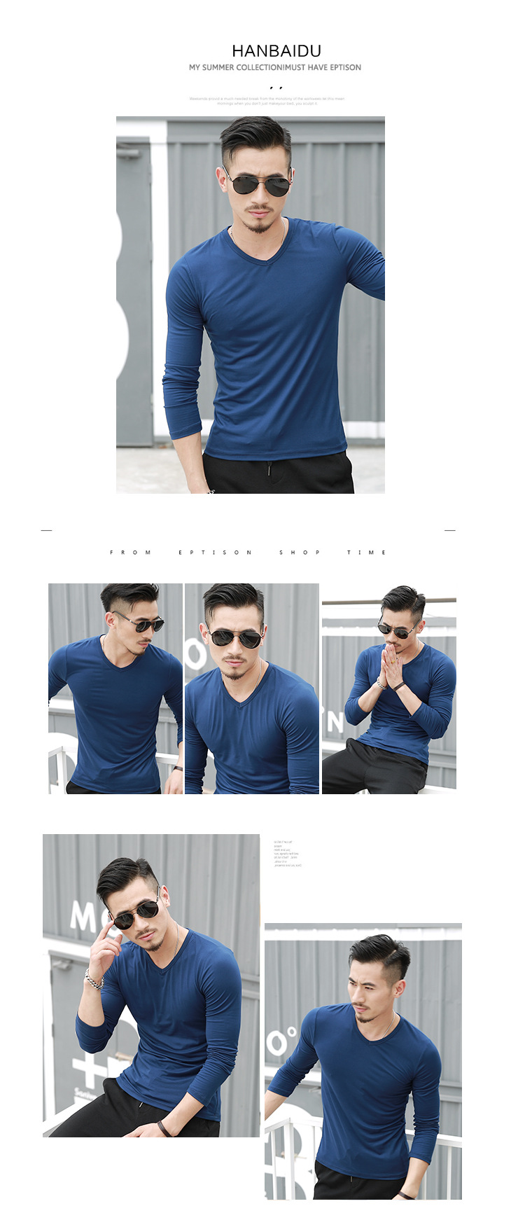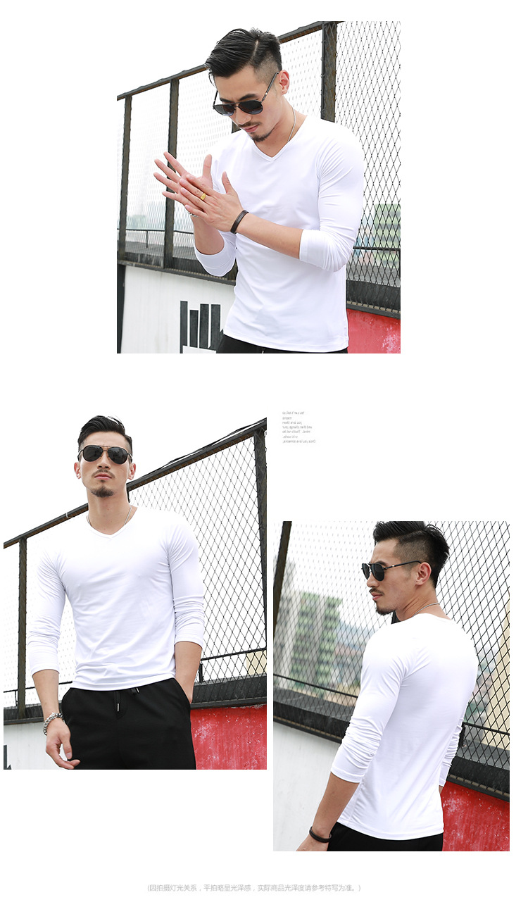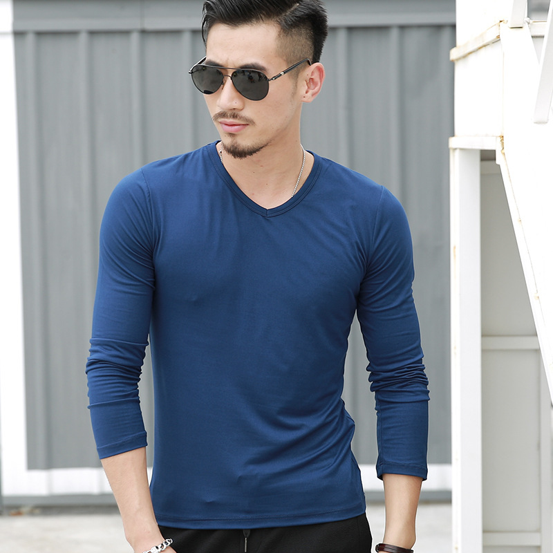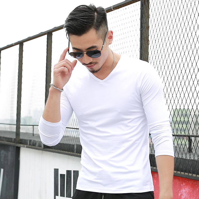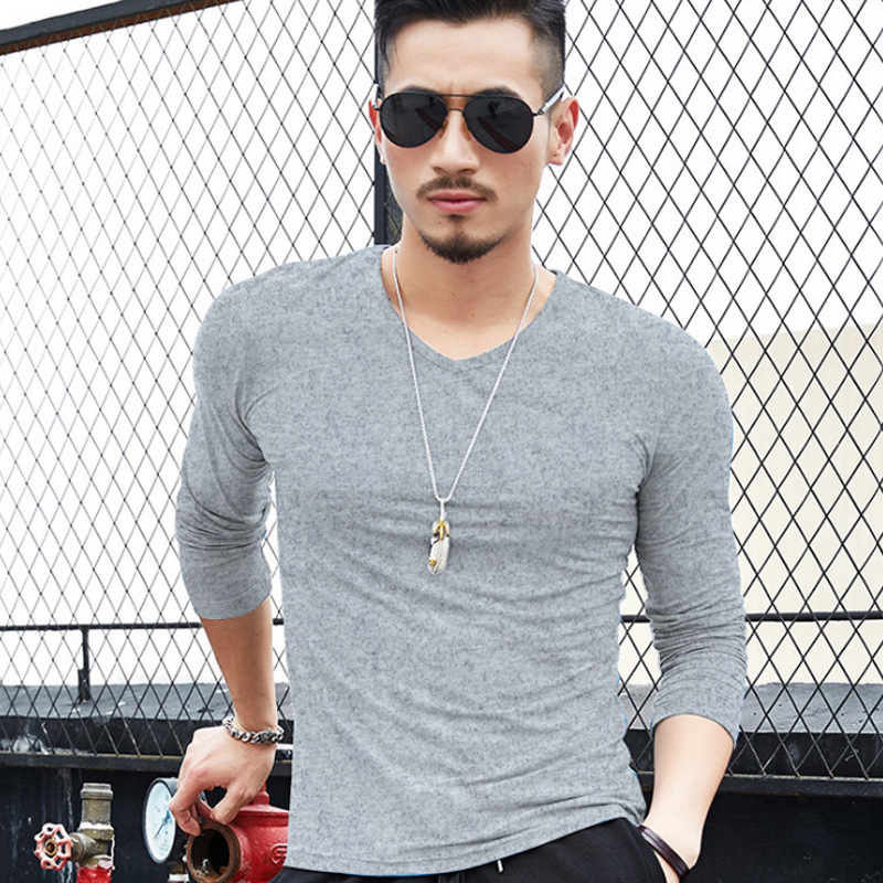 남자의 긴 소매 단색 티셔츠 V-넥 티셔츠 단색 남자의 긴 소매 티셔츠 봄과 가을 캐주얼 기본 셔츠 머리카락의 세대