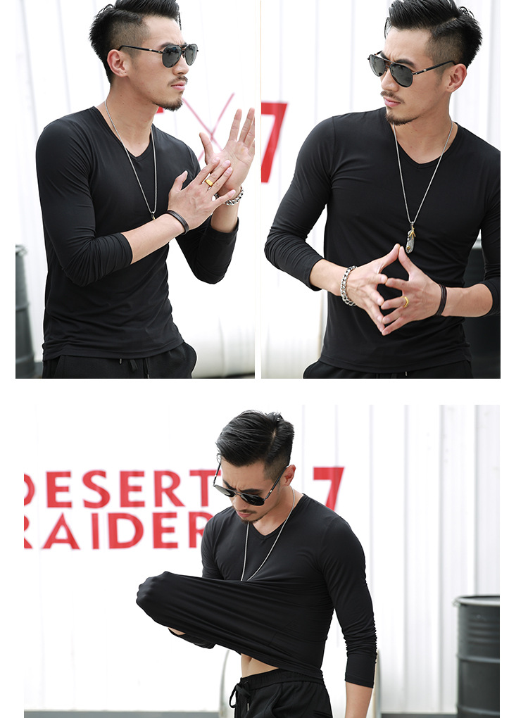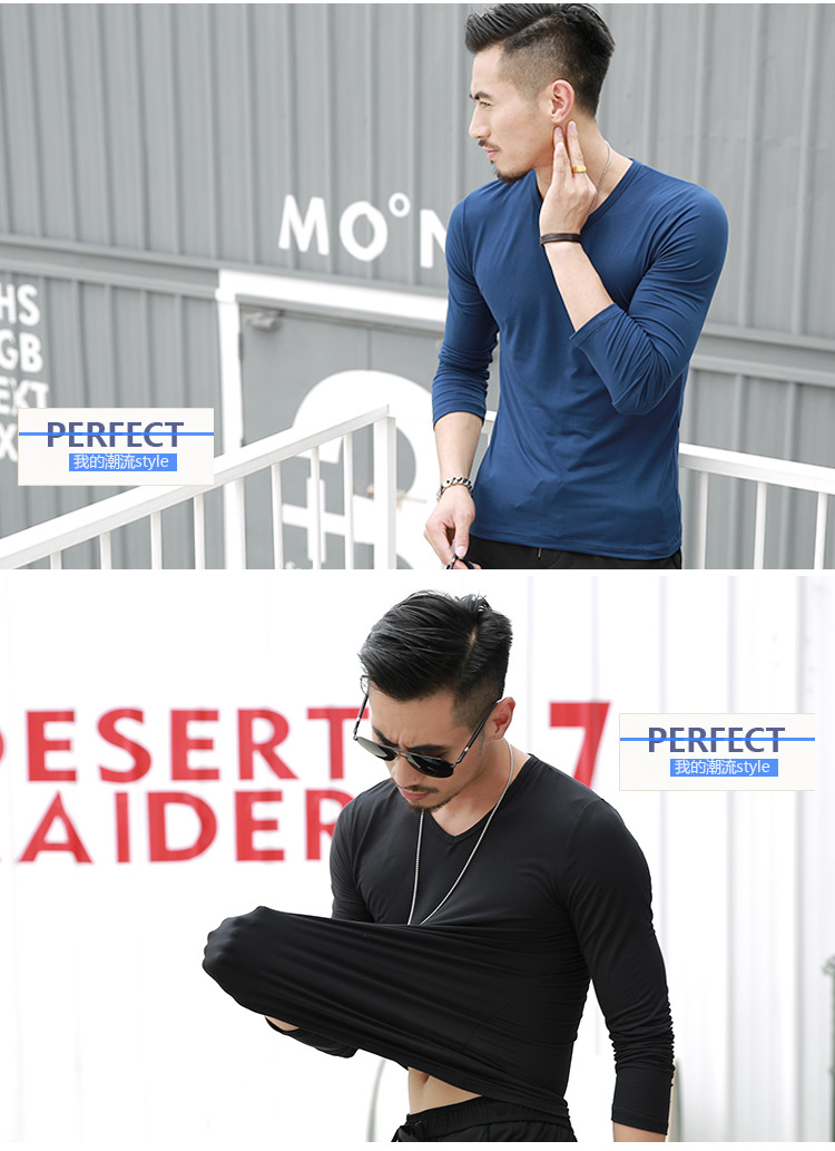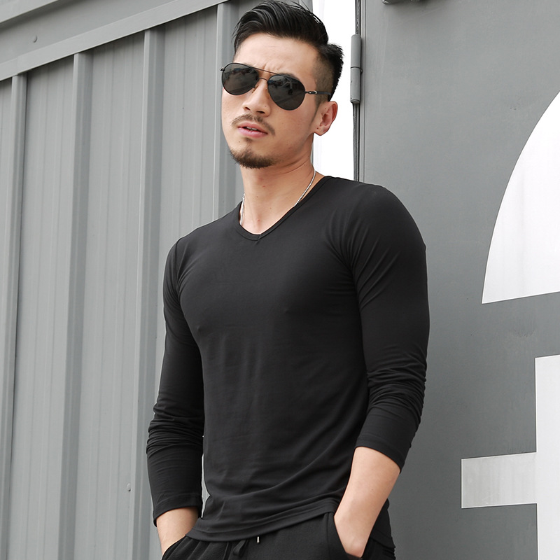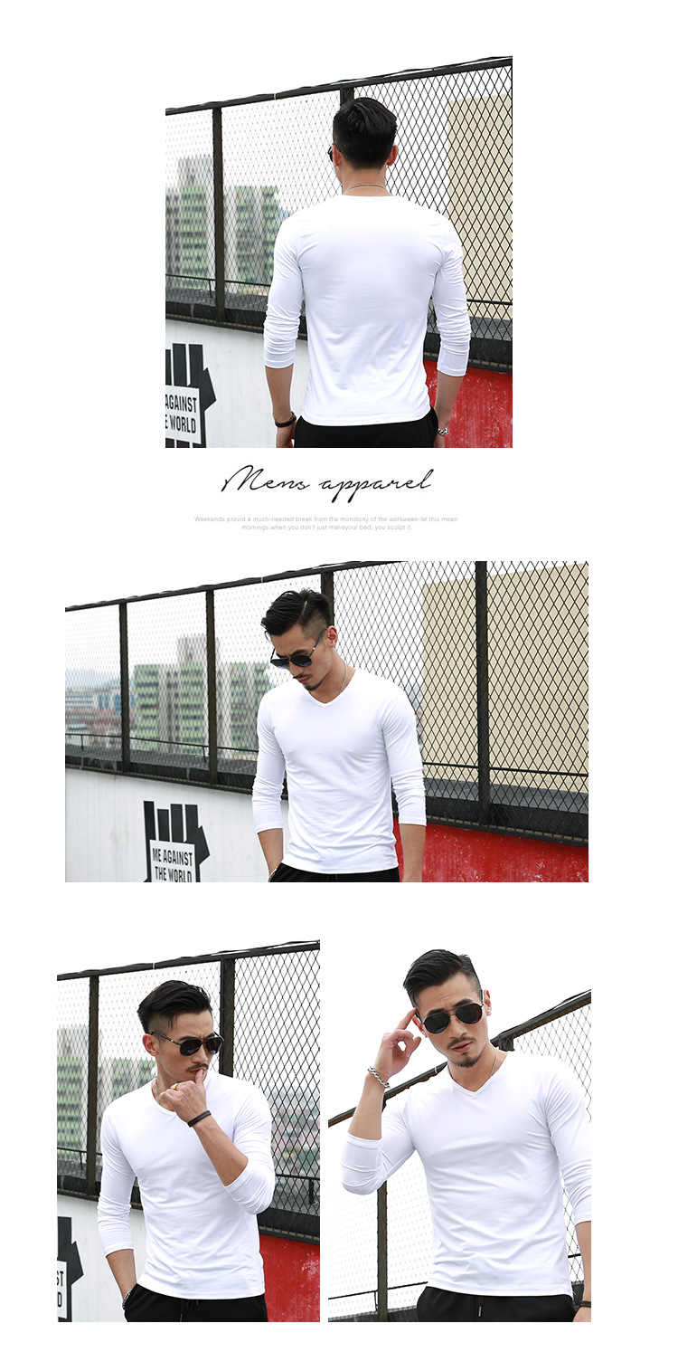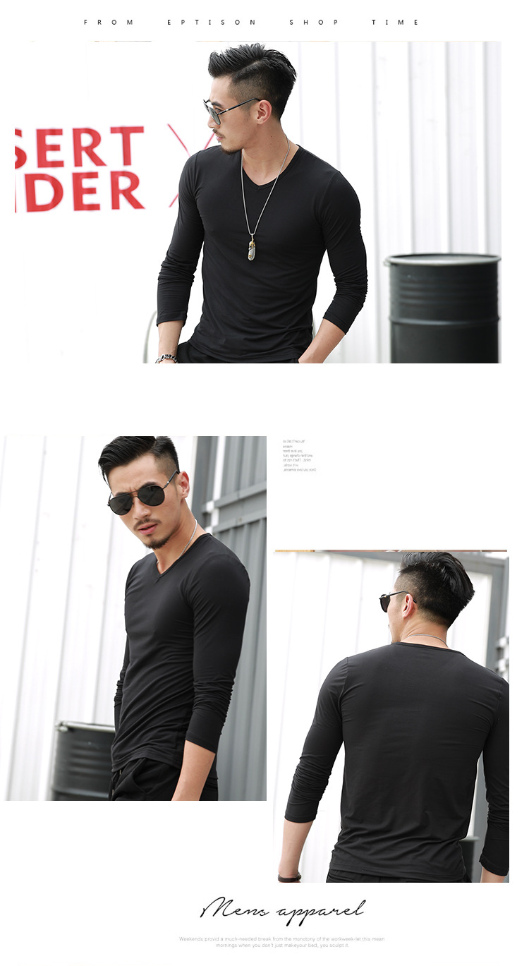 남자의 긴 소매 단색 티셔츠 V-넥 티셔츠 단색 남자의 긴 소매 티셔츠 봄과 가을 캐주얼 기본 셔츠 머리카락의 세대