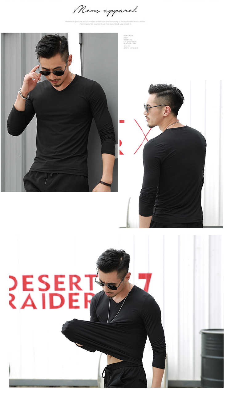 남자의 긴 소매 단색 티셔츠 V-넥 티셔츠 단색 남자의 긴 소매 티셔츠 봄과 가을 캐주얼 기본 셔츠 머리카락의 세대스토어 가기