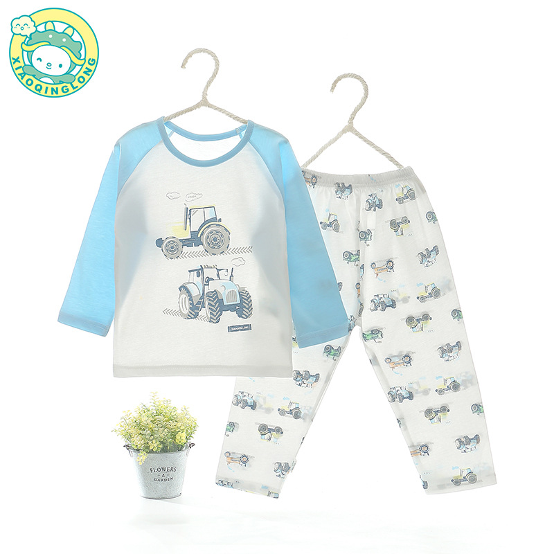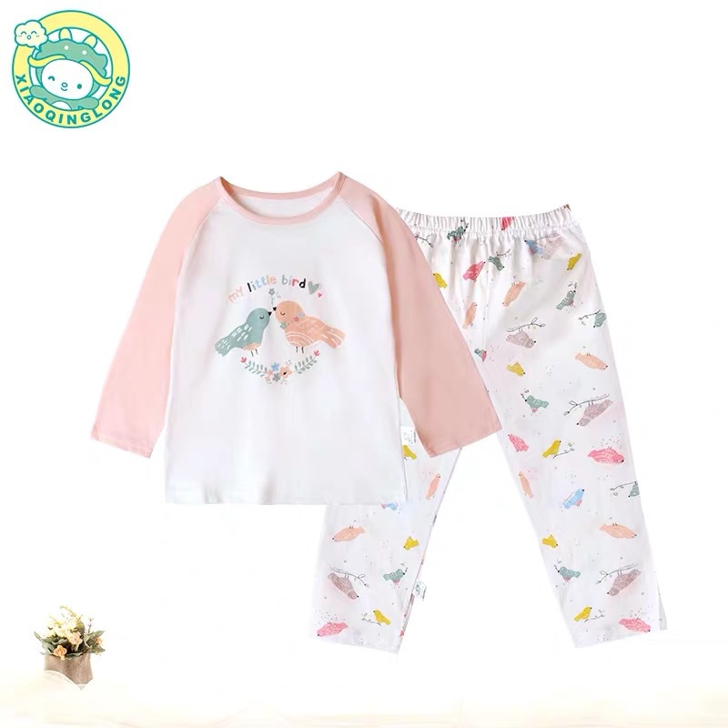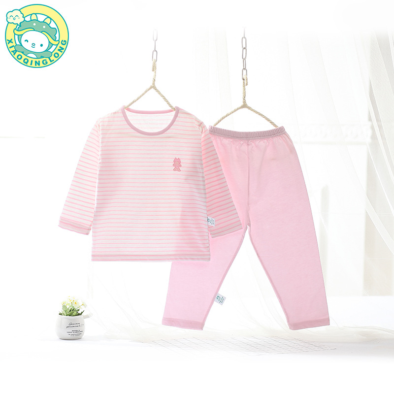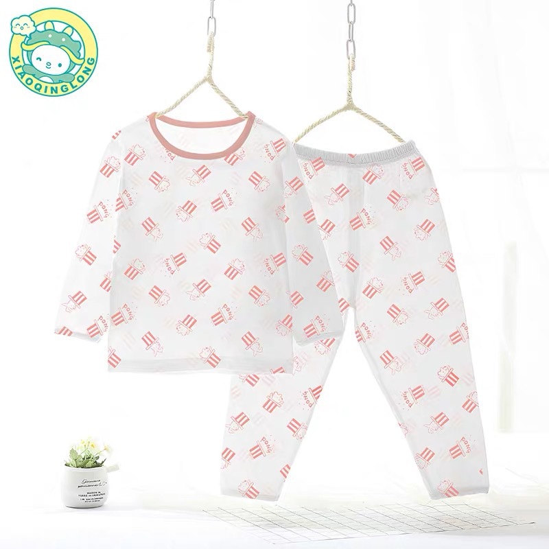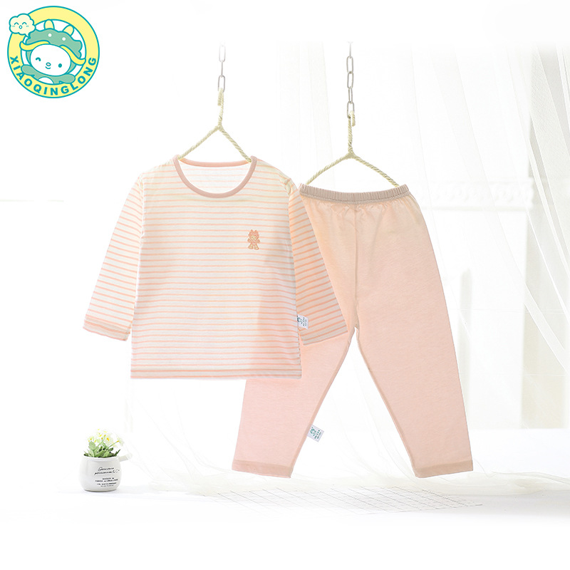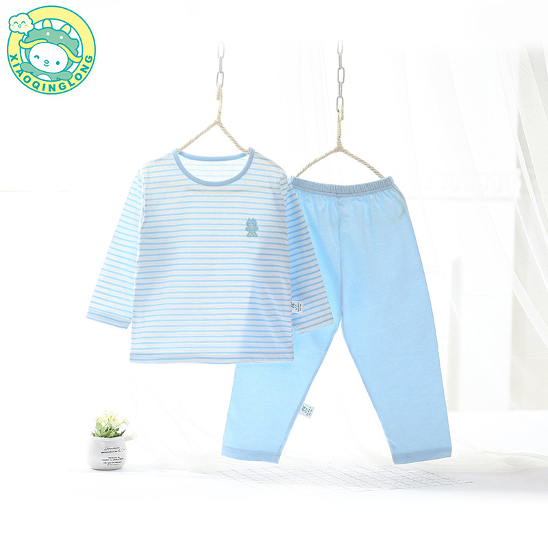 Xiaoqinglong 소년 소녀 둥근 목 저지 가정 의류 에어컨 의류 소형, 중형 및 대형 어린이 긴팔 정장 7056 통기성과 편안함