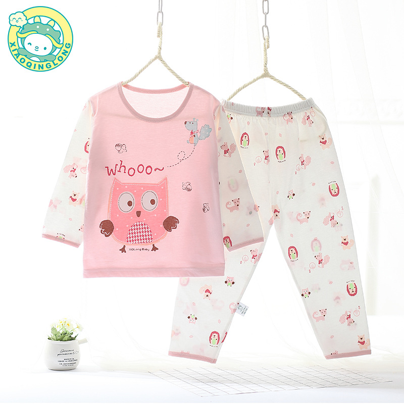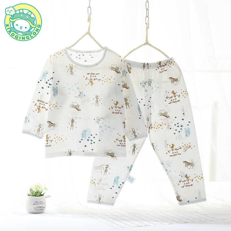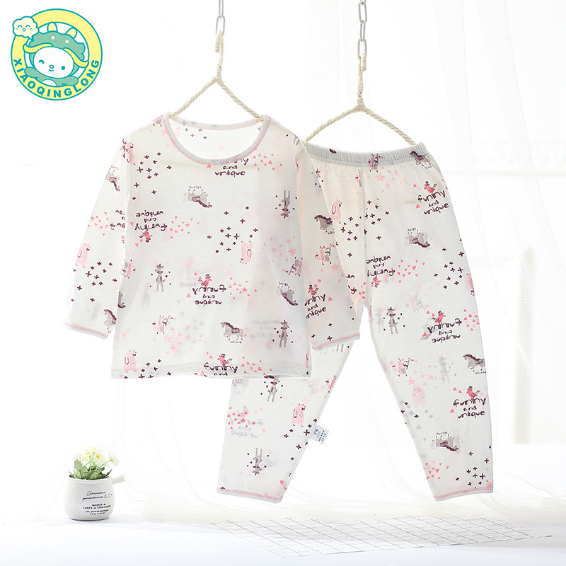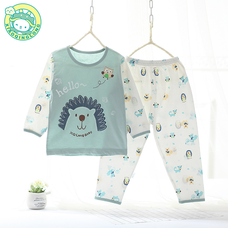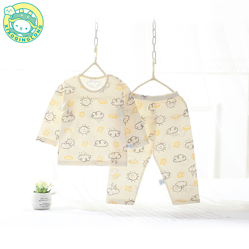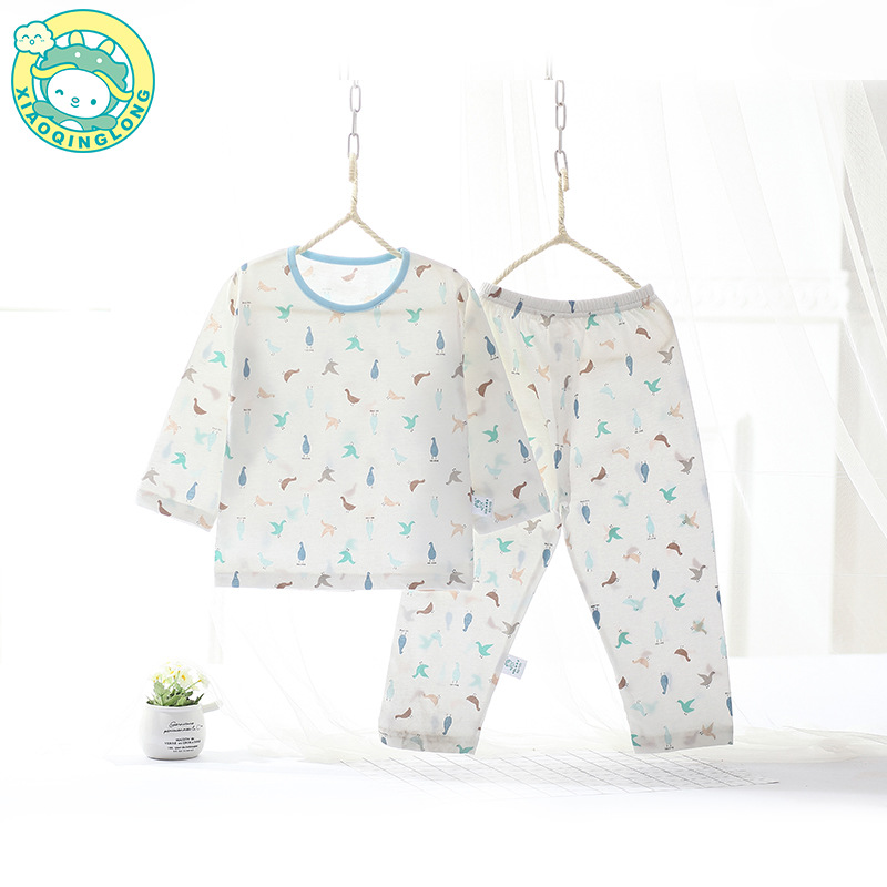 Xiaoqinglong 소년 소녀 둥근 목 저지 가정 의류 에어컨 의류 소형, 중형 및 대형 어린이 긴팔 정장 7056 통기성과 편안함