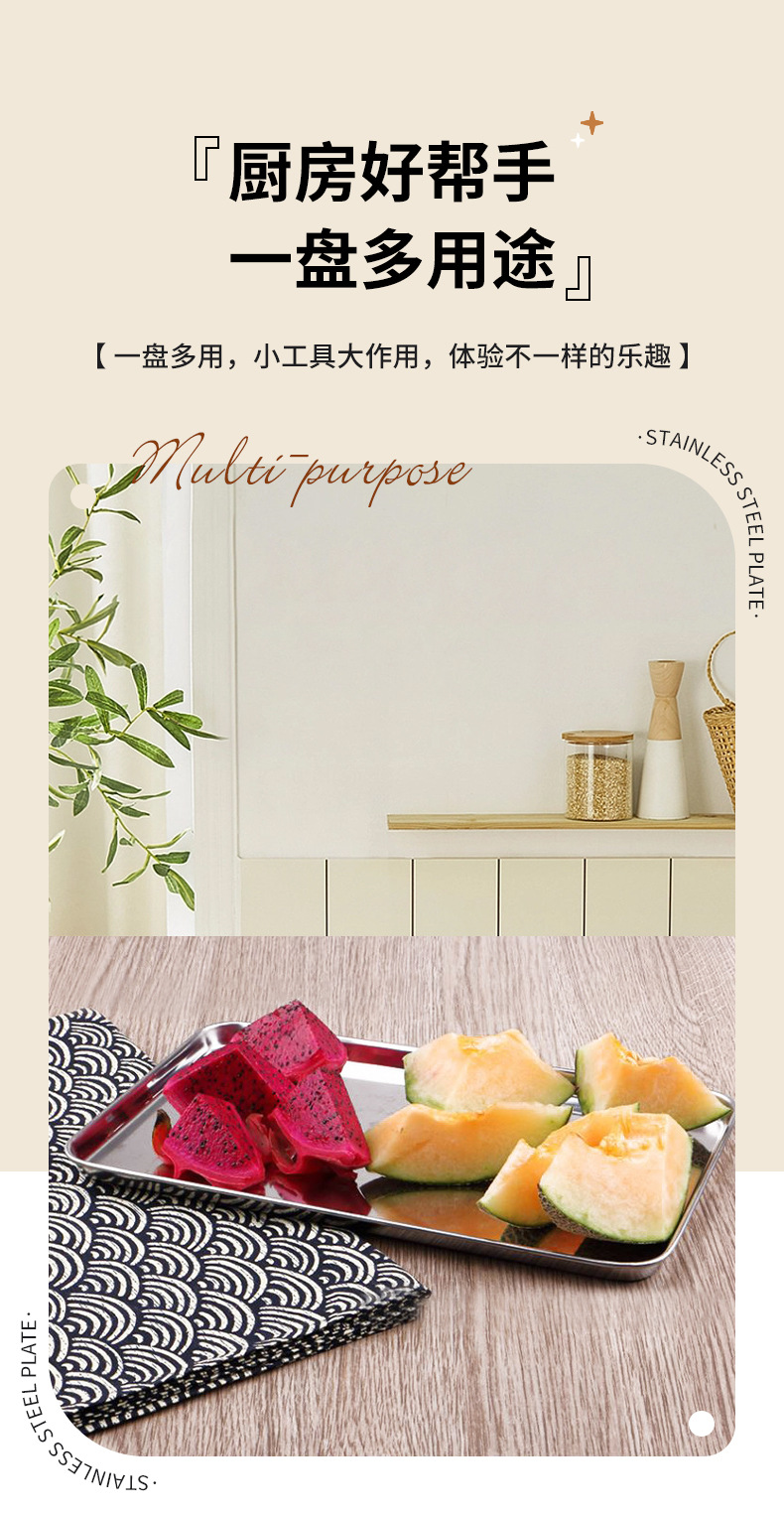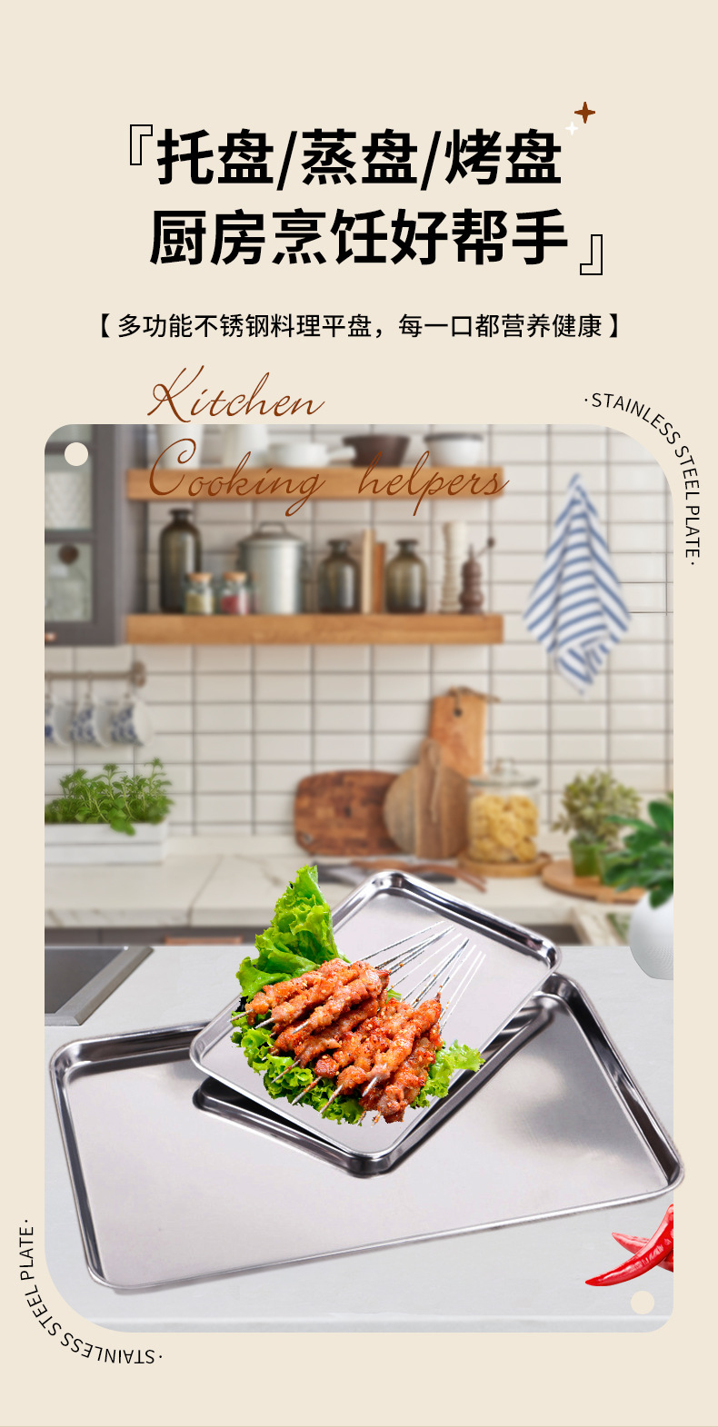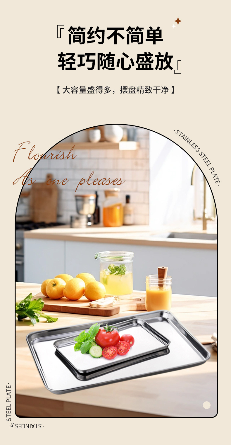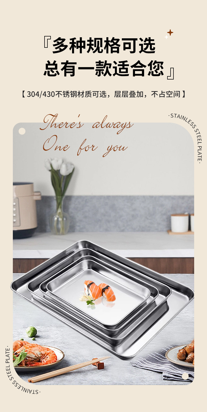 Heng Qi 가정용 간단한 스테인레스 스틸 얕은 플레이트 일본 요리 플랫 플레이트 쌀 그릇 거울 스퀘어 플레이트 과일 바베큐 플레이트 도매스토어 가기