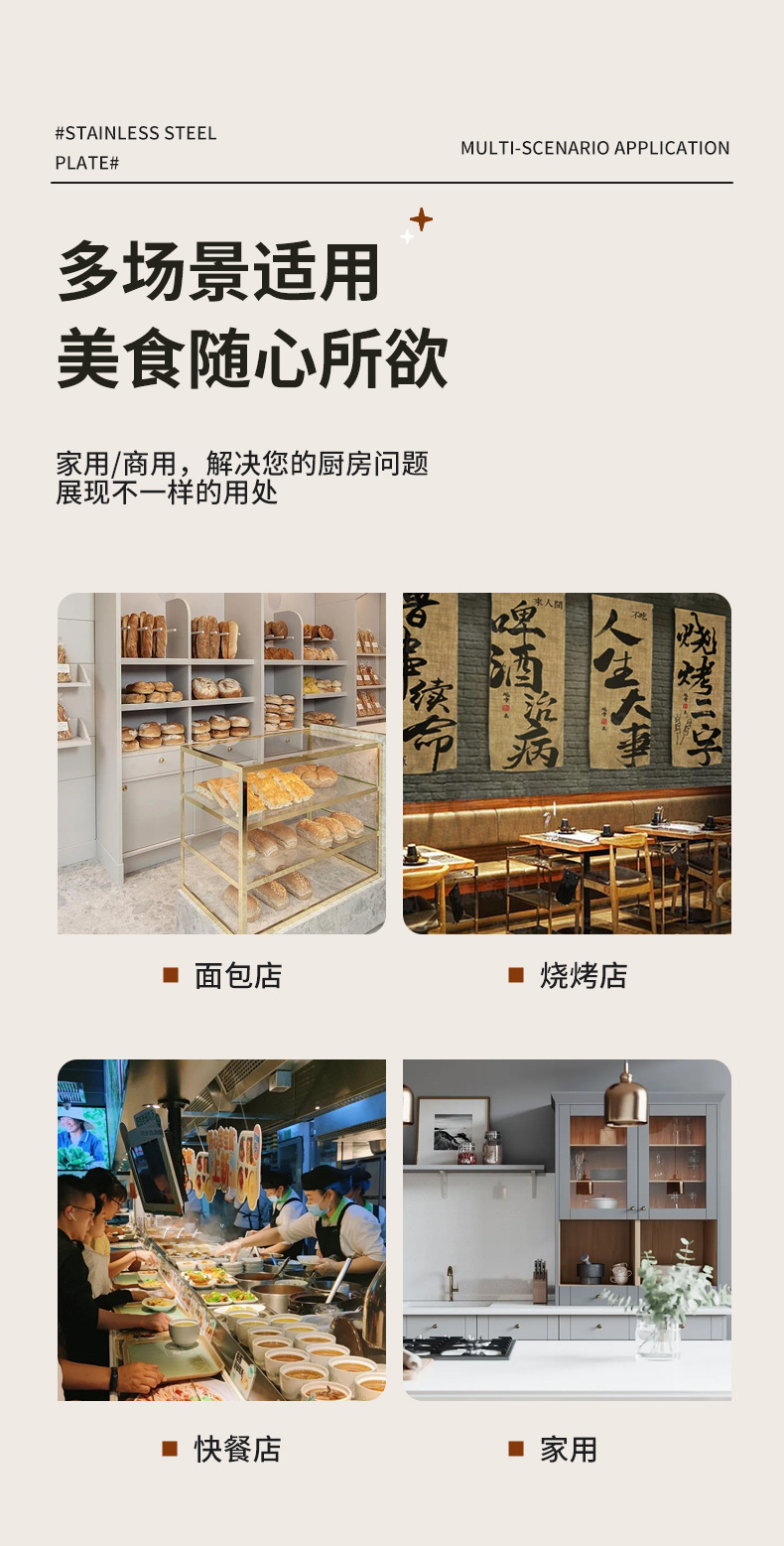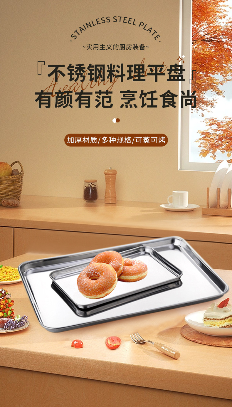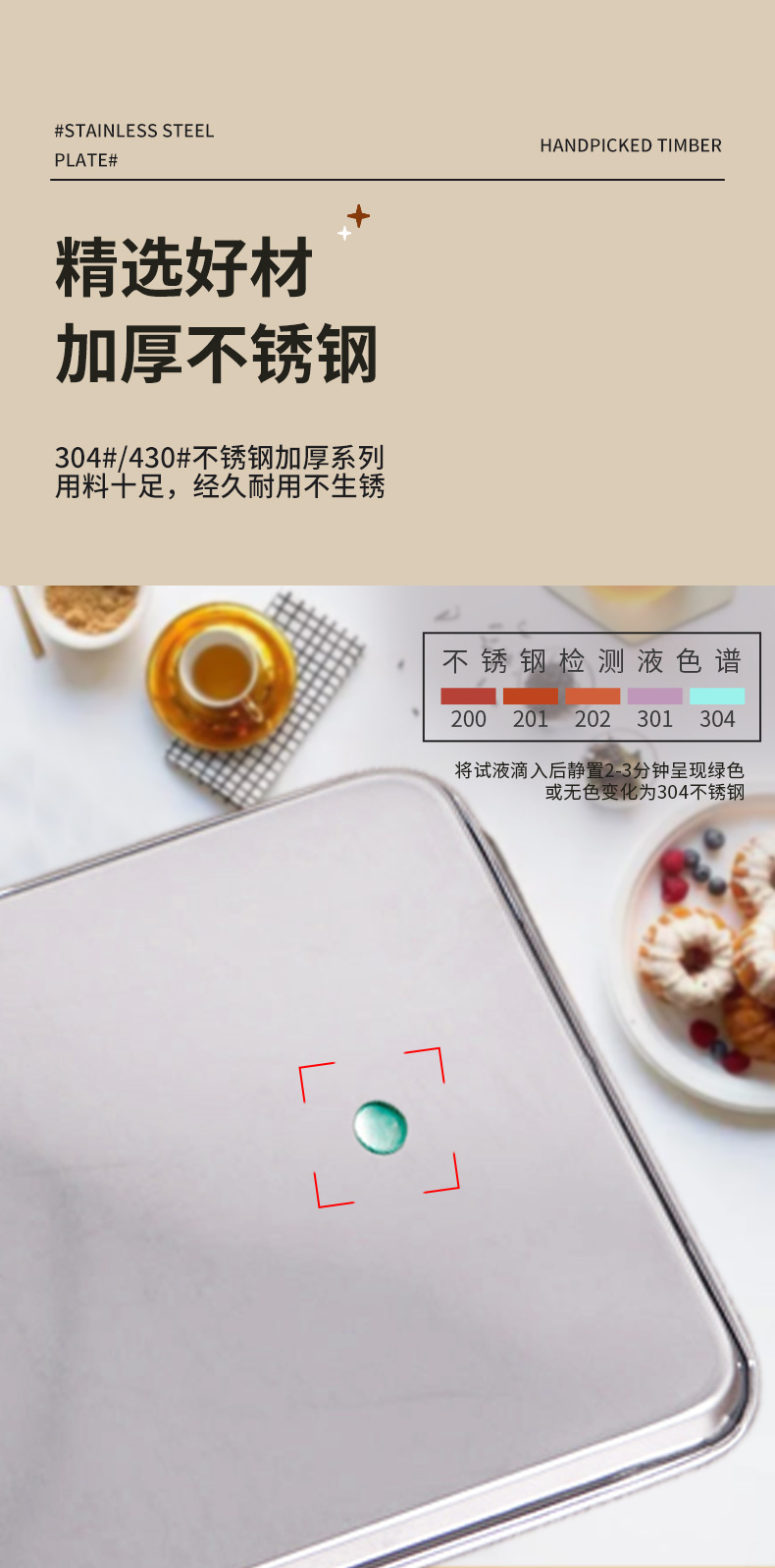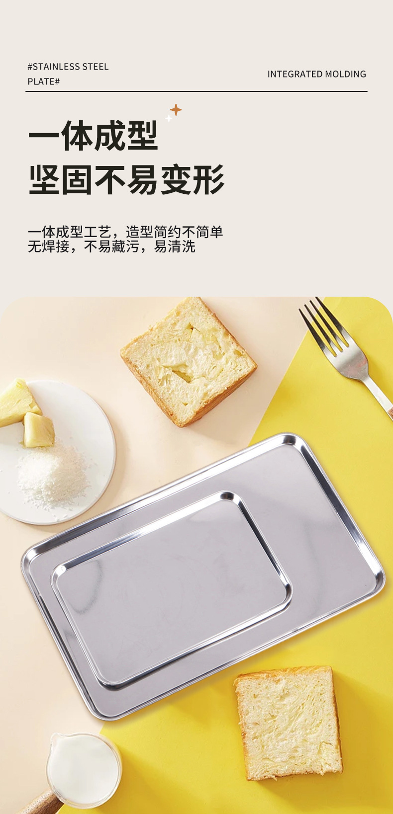 Heng Qi 가정용 간단한 스테인레스 스틸 얕은 플레이트 일본 요리 플랫 플레이트 쌀 그릇 거울 스퀘어 플레이트 과일 바베큐 플레이트 도매스토어 가기