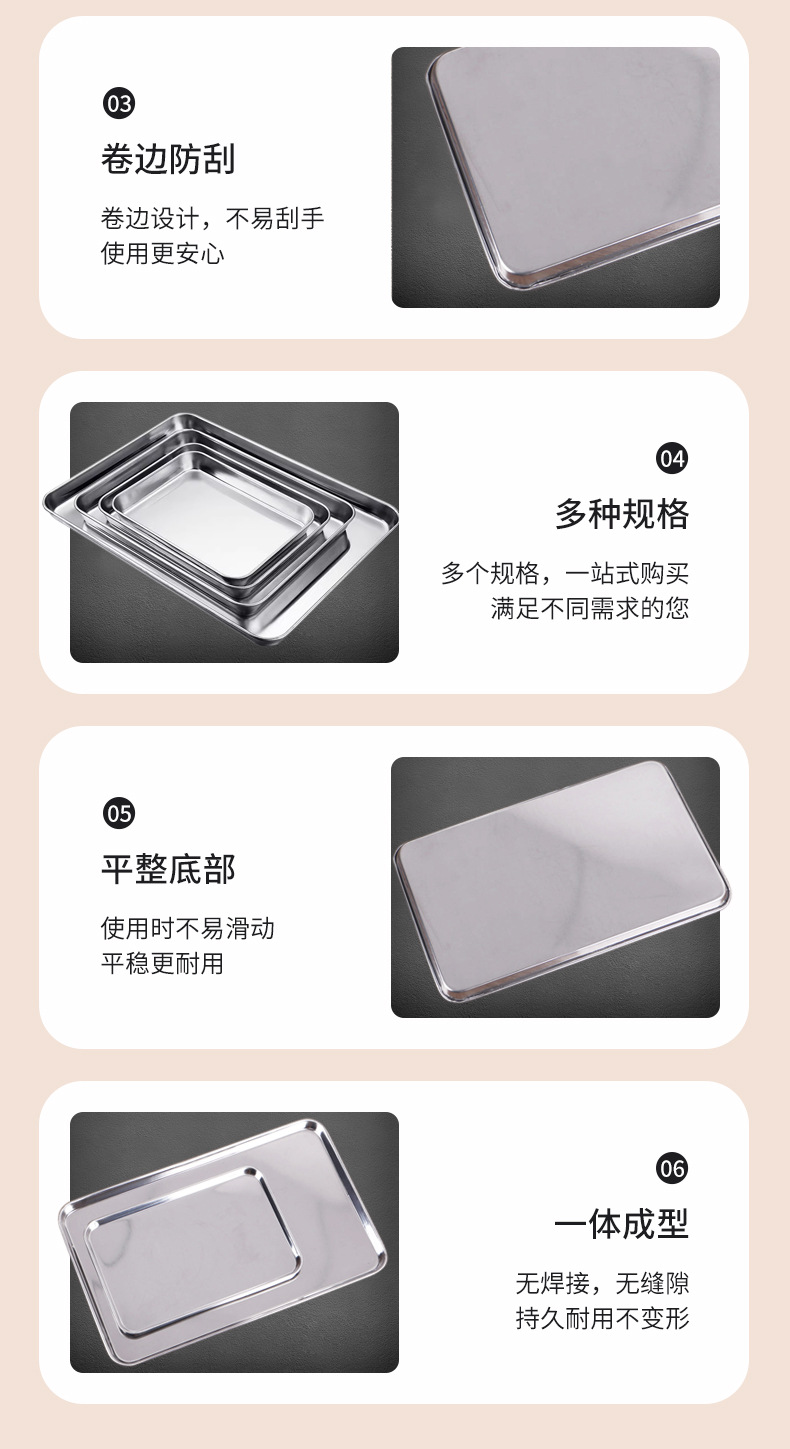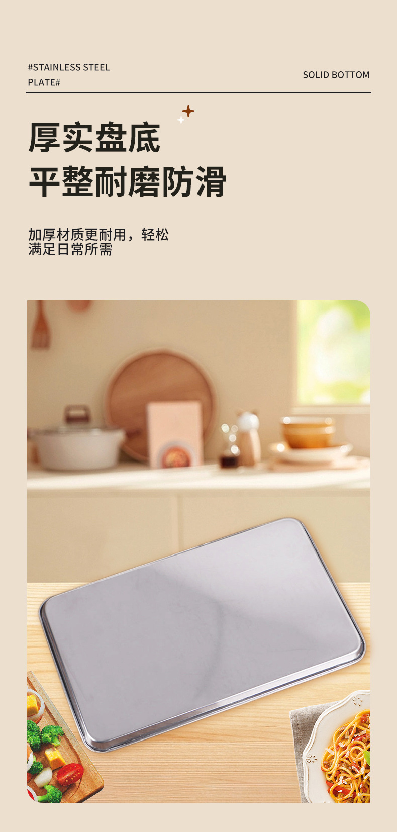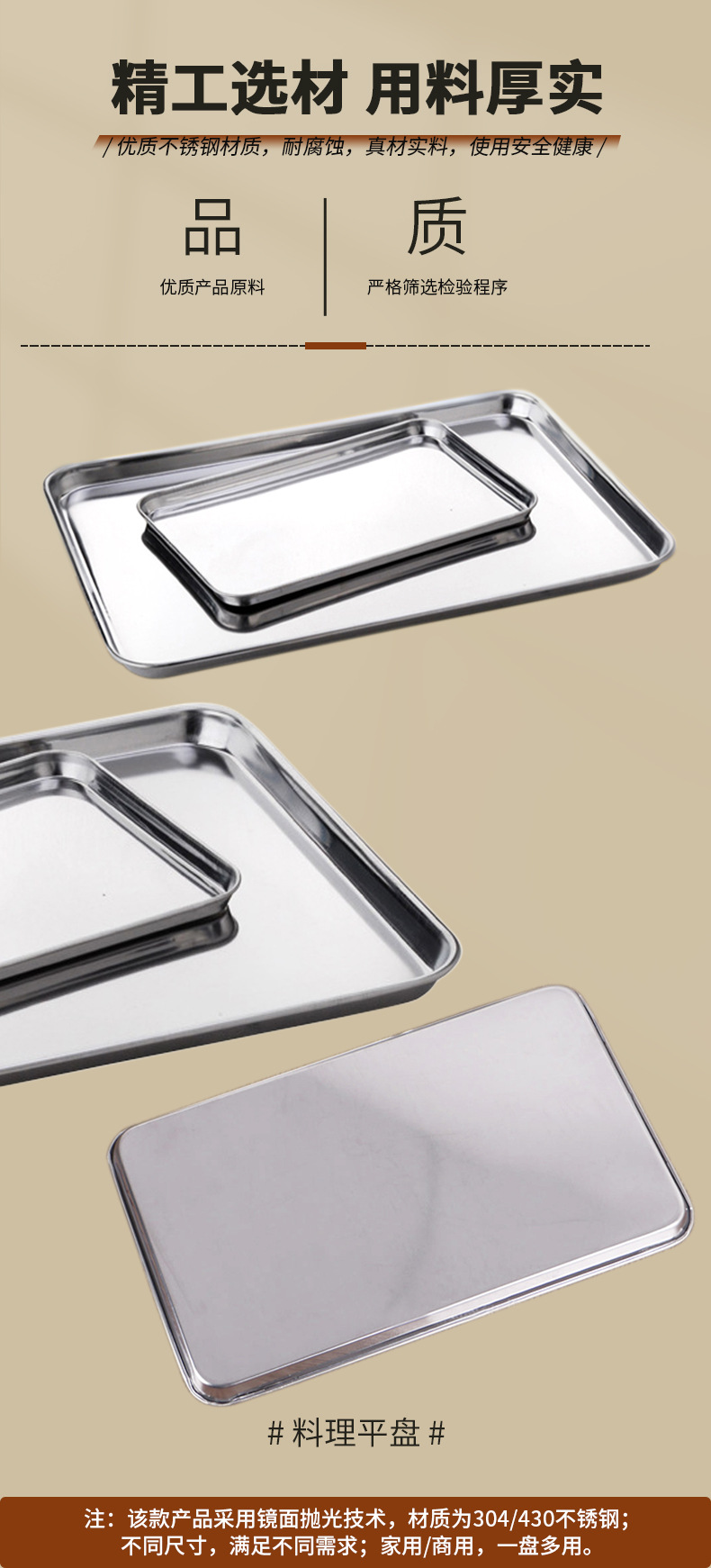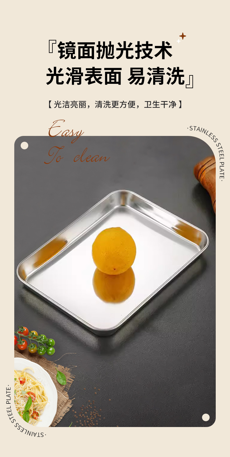 Heng Qi 가정용 간단한 스테인레스 스틸 얕은 플레이트 일본 요리 플랫 플레이트 쌀 그릇 거울 스퀘어 플레이트 과일 바베큐 플레이트 도매