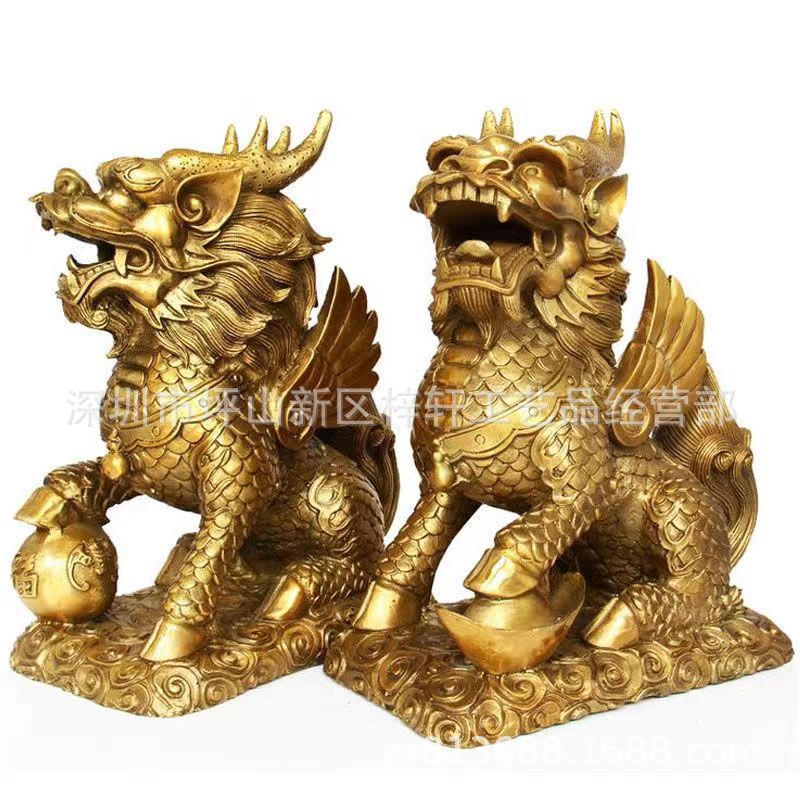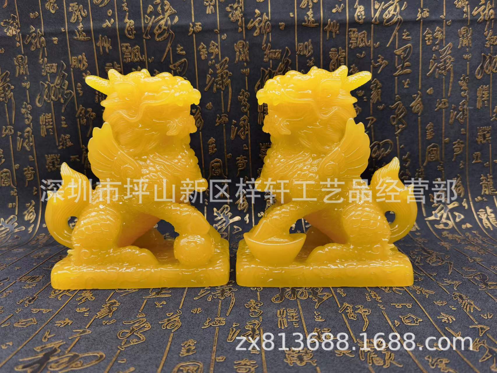 황금 키린 장식품 노란색 키린 녹색 키린 장식품 가정 장식 사무실 장식품 쌍스토어 가기