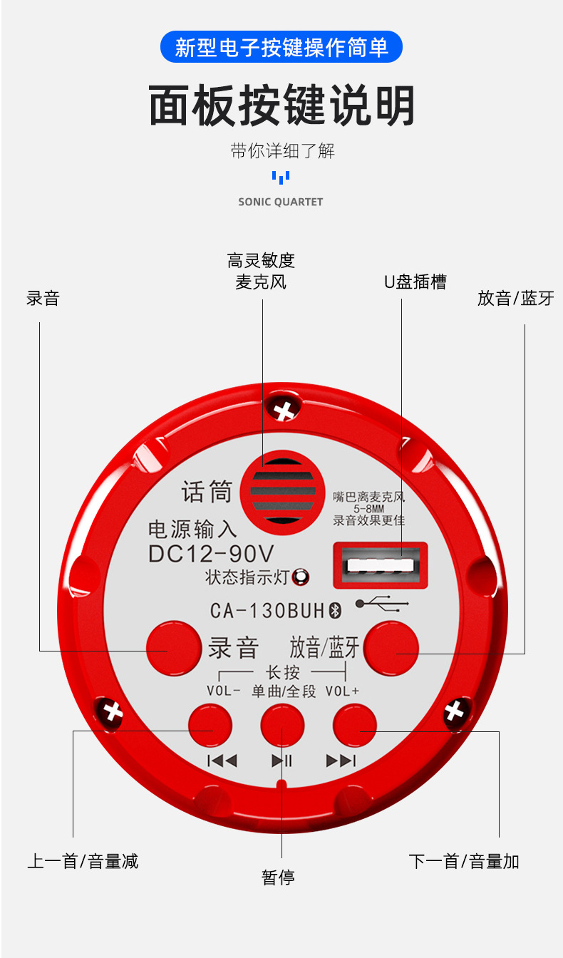 • 제품 단어 클립 라인 12-90V 전기 자동차/블루투스 플러그 USB (CA-130BH)