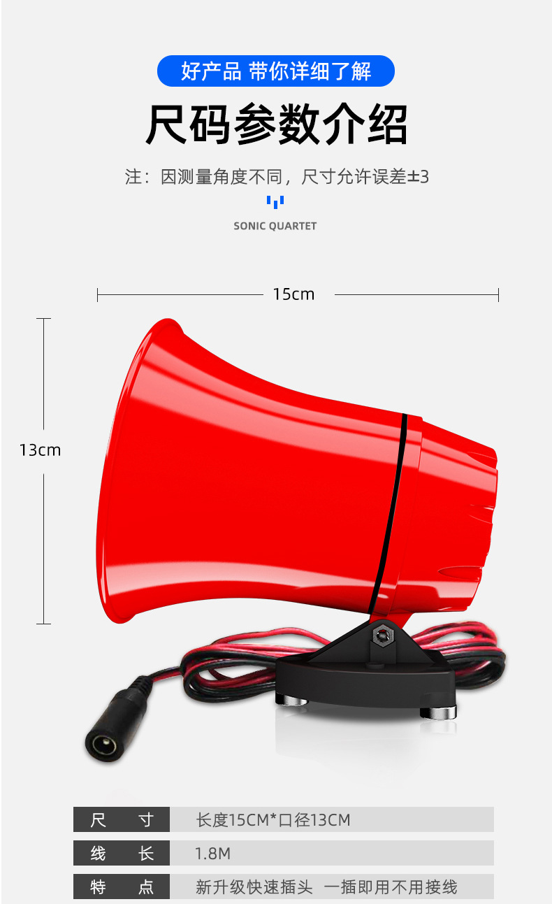 12V 자동차 라우드 스피커 야외 스톨 판매 기계 녹화 프로모션 혼 광고 스피커스토어 가기