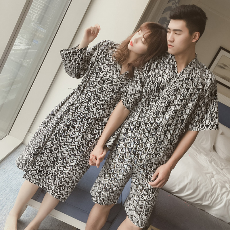 커플의 일본 잠옷 여자의 가을과 겨울 면 거즈 기모노 잠옷 투피스 땀 사우나 옷 가정복 남성용스토어 가기