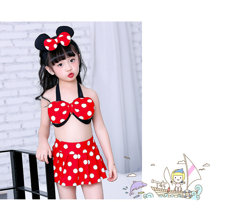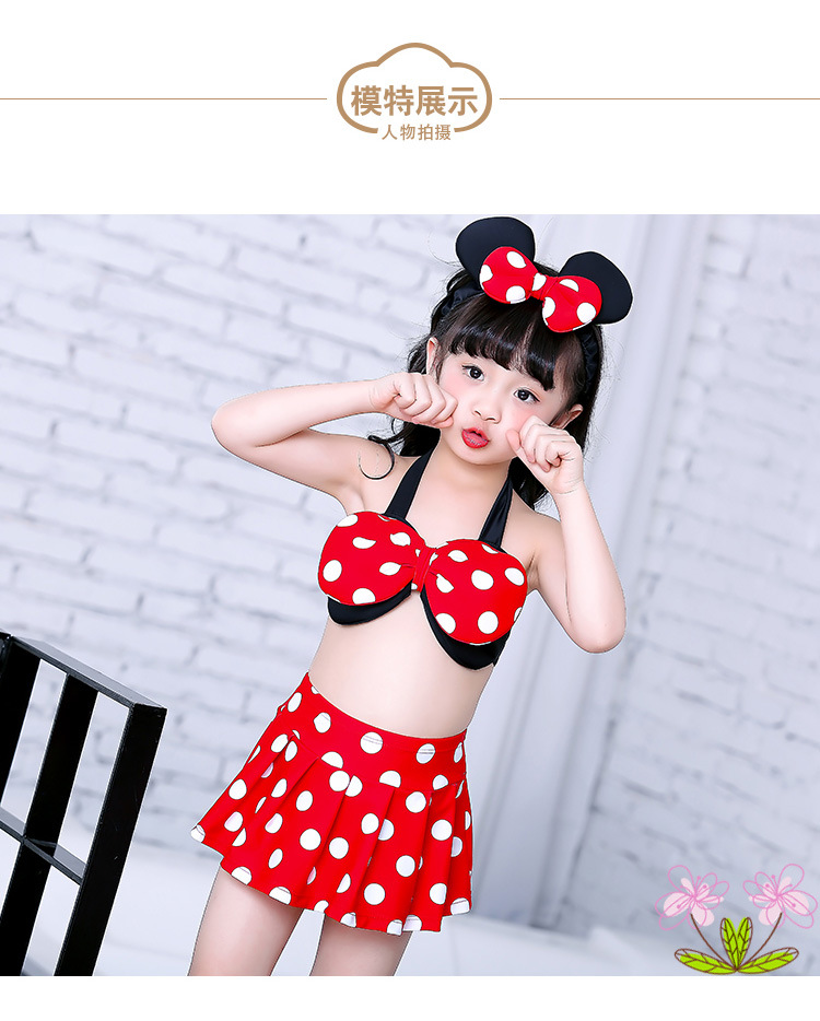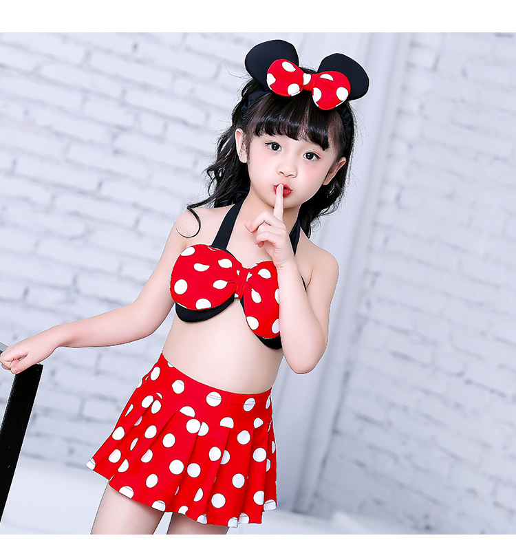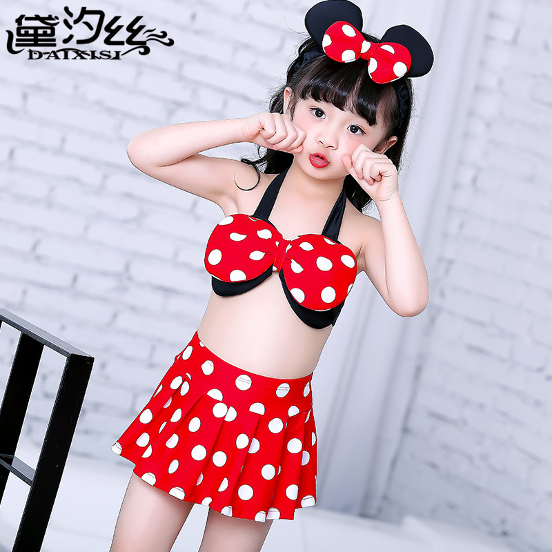 새로운 한국 스타일의 새로운 어린이 수영복 귀여운 아기 물방울 무늬 작은 어린이 원피스 수영복 미니 수영복