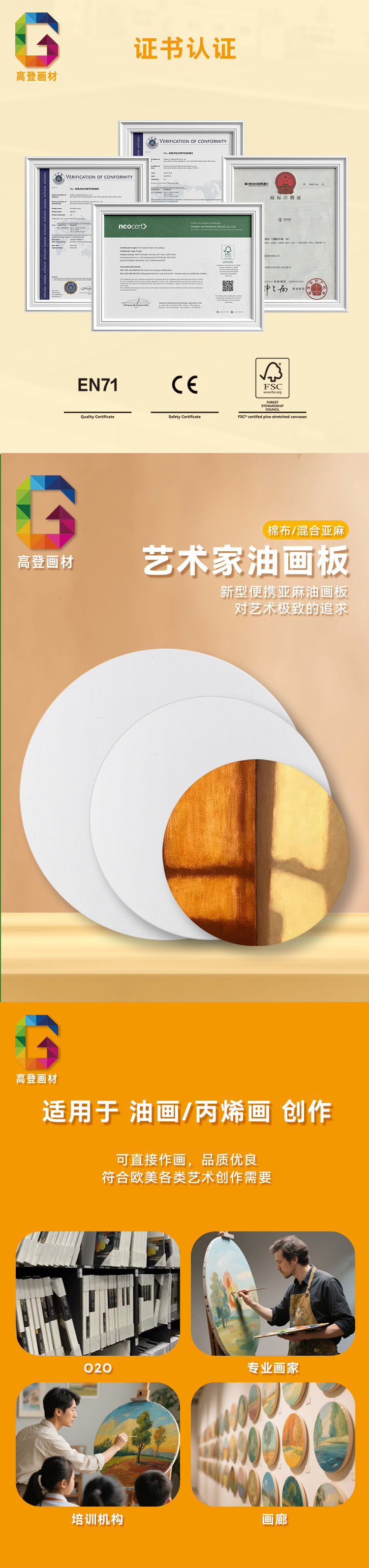 초보자를 위한 새로운 스타일의 원형 품질 오일 페인팅 보드, 아크릴 페인팅 캔버스, 공장 직매, 크리에이티브 고든 코튼스토어 가기