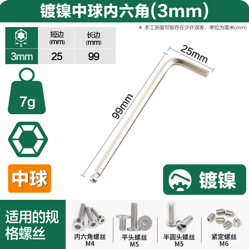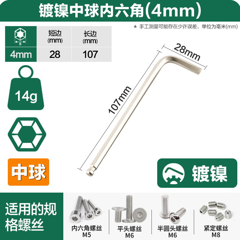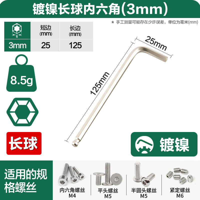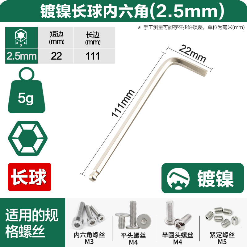 Weihao 니켈 도금 엑스트라 롱 알렌 렌치 볼 헤드 싱글 라운드 헤드 볼 헤드 육각 키 에지 내부 육각 렌치 핸드스토어 가기