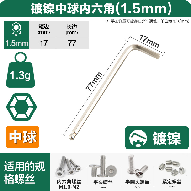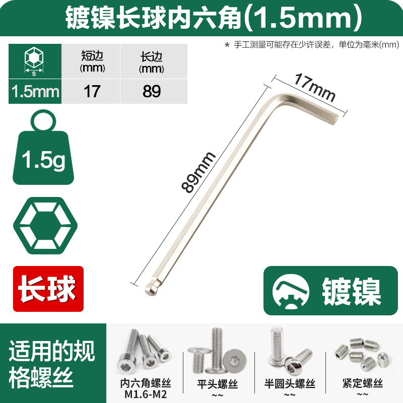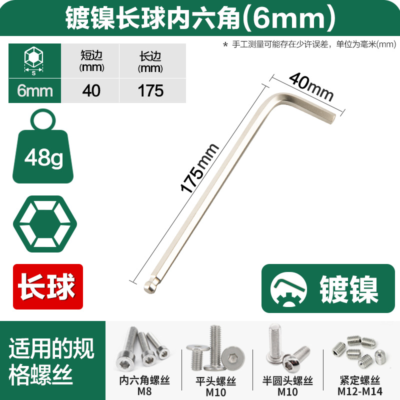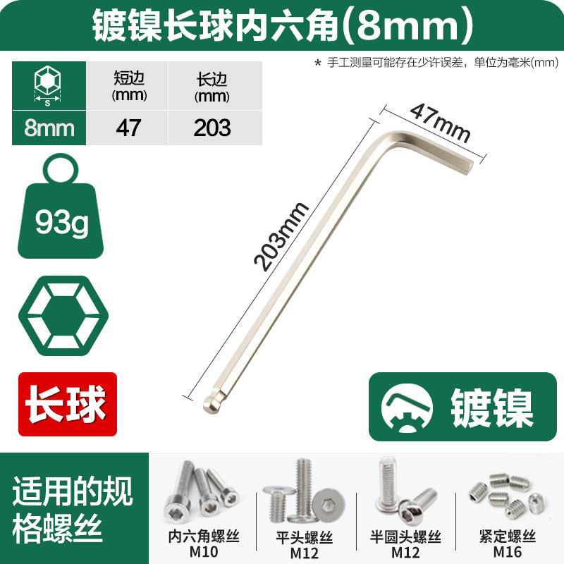 Weihao 니켈 도금 엑스트라 롱 알렌 렌치 볼 헤드 싱글 라운드 헤드 볼 헤드 육각 키 에지 내부 육각 렌치 핸드