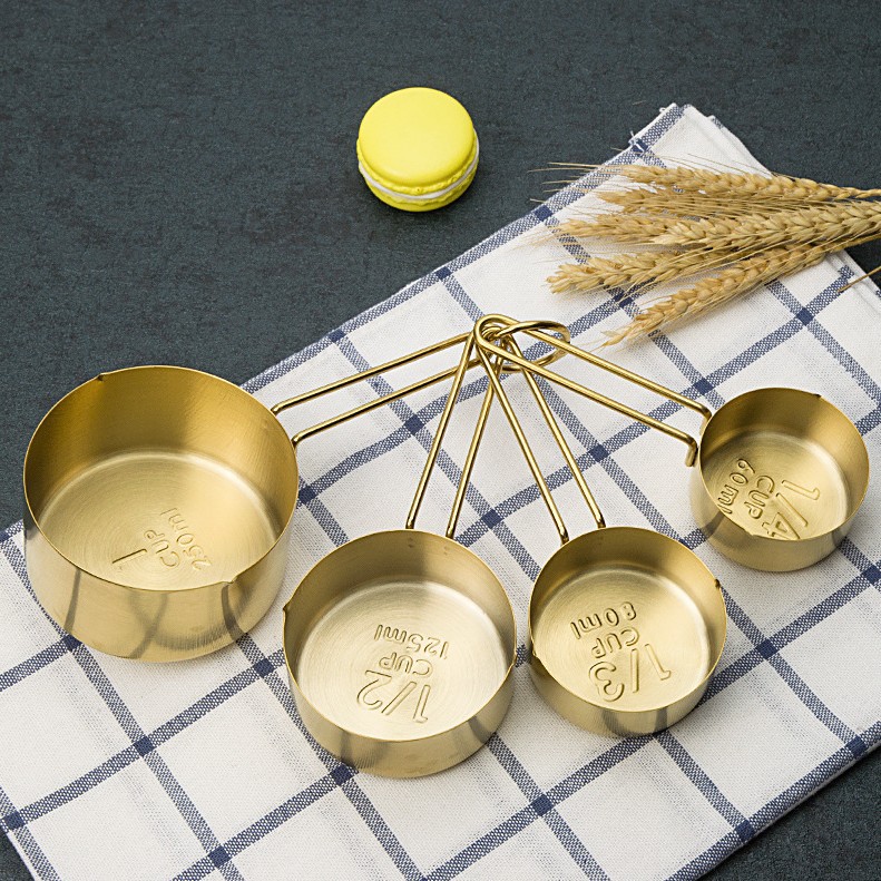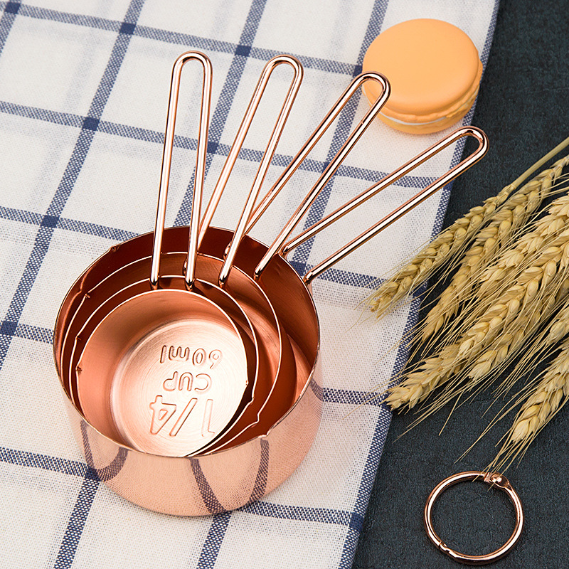 북유럽 인 4 종 세트 로즈 골드 계량스푼 계량컵 4 종 세트 황동 계량스푼 스테인리스 구리 도금 계량스푼